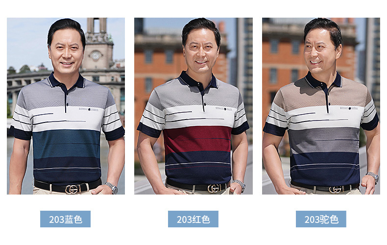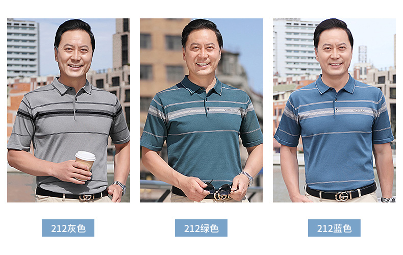 Bố quần áo mùa hè của đàn ông trung niên và cao tuổi áo phông ngắn tay 40-50 tuổi ông nội của đàn ông trung niên nửa tay áo lụa băng