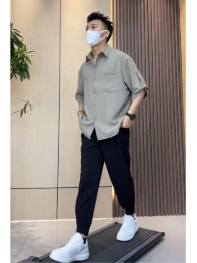 Bộ quần áo thời trang mùa hè mặc quần áo nam cao cấp xếp nếp áo sơ mi ngắn tay bé trai quần tây nam triều