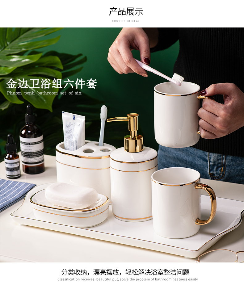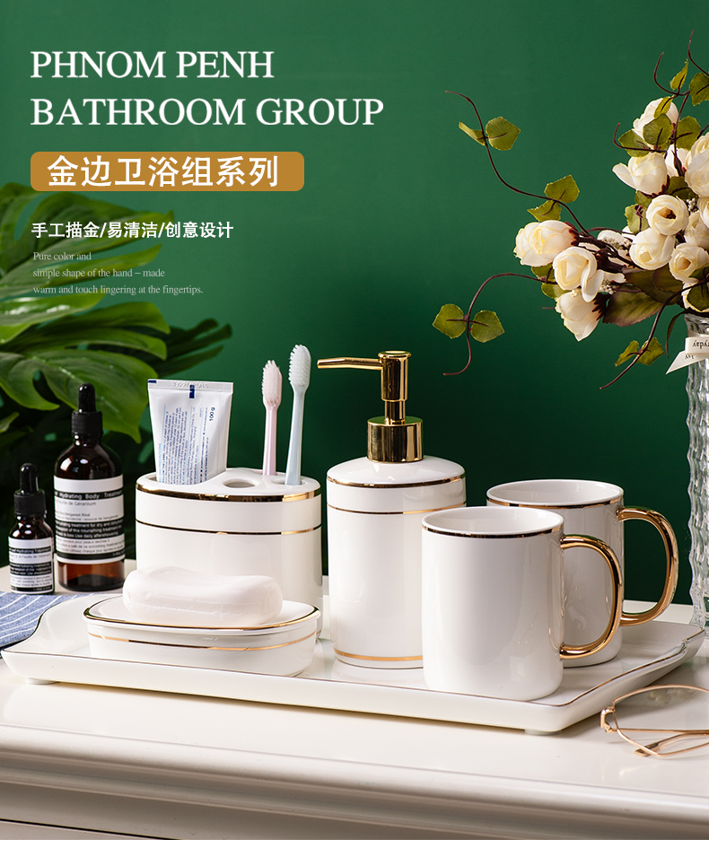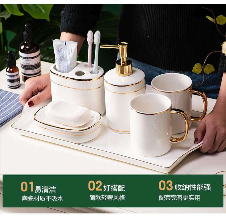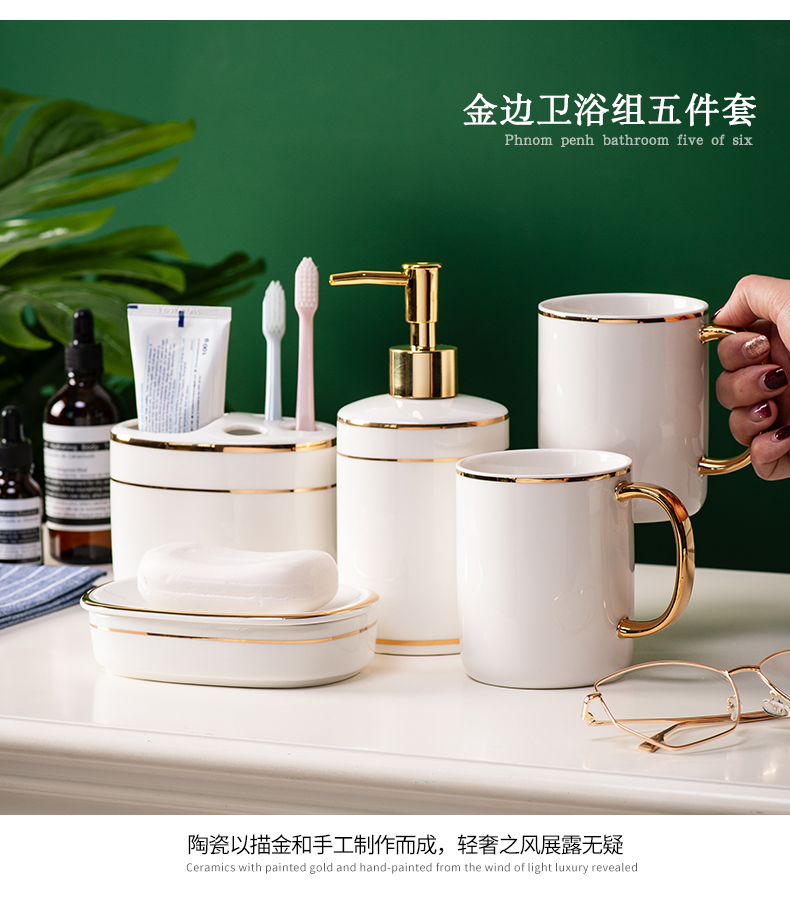 Bộ rửa sang trọng nhẹ Phòng tắm gốm sứ sáng tạo năm mảnh Phòng tắm Bắc Âu cung cấp cho nhà đám cưới bộ răng nước súc miệng cốc