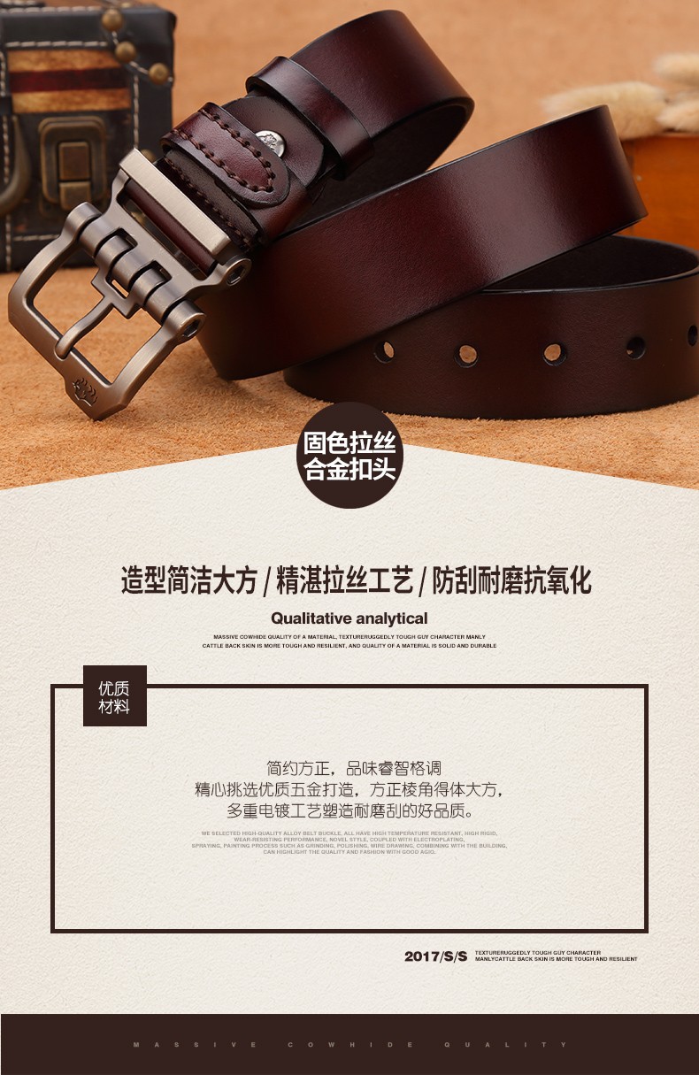 Xuất xứ: Quảng Châu Thương hiệu: Khác Mã sản phẩm: N71223 Chiều rộng: Thông thường (2-4cm) Màu sắc: Nâu/Vàng đất/Đáy lông đen/Đáy lông cà phê/Đáy lông cà phê Phân loại phong cách: Nghệ thuật cổ điển Chất liệu khóa thắt lưng: Da hợp kim Các tính năng: Da bò hai lớp Chất liệu: da thật Năm/mùa niêm yết: khác Phương pháp buộc: khóa ghim Chiều dài (CM): 110cm/115cm/120cm/125cm/130cm/130cm Phân loại yếu tố phổ biến: Không có