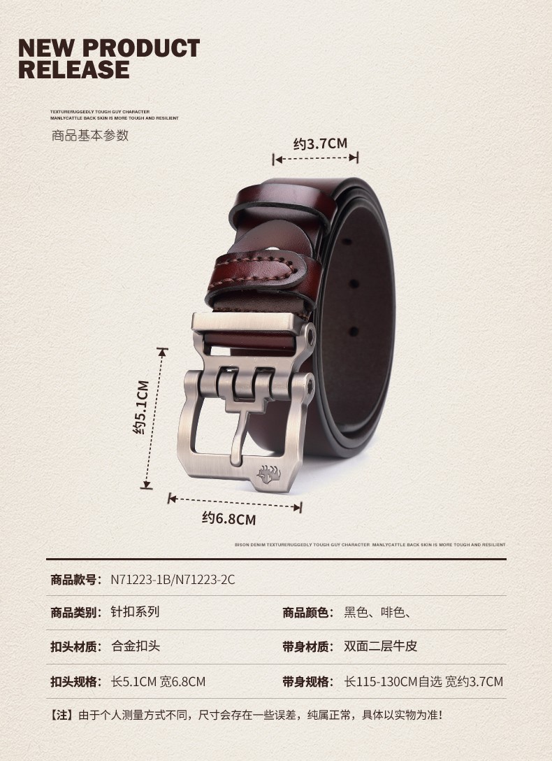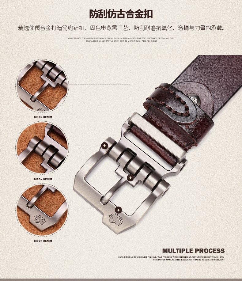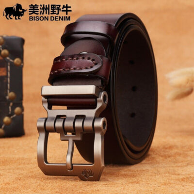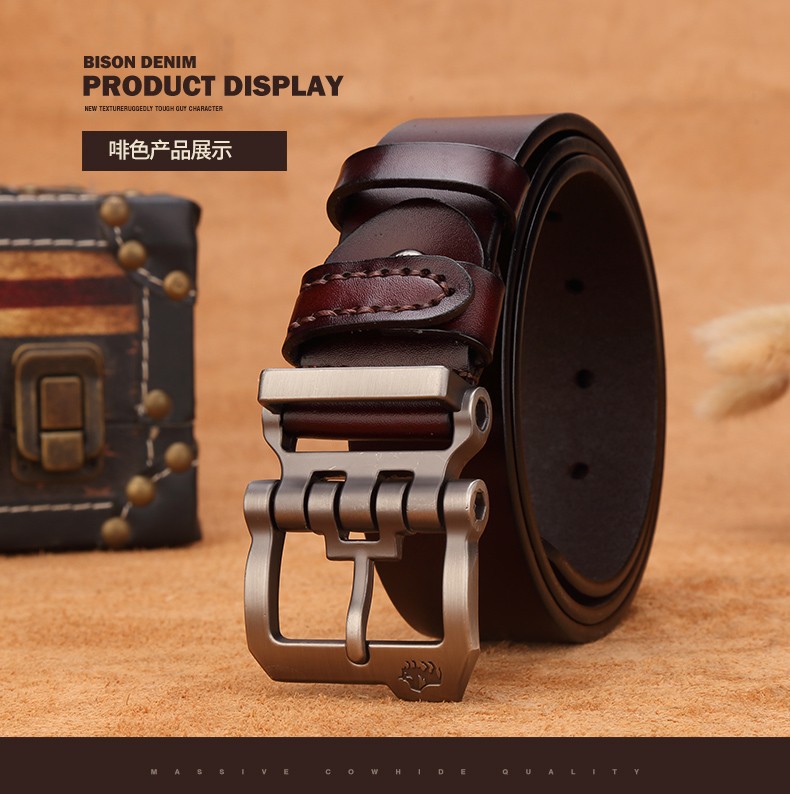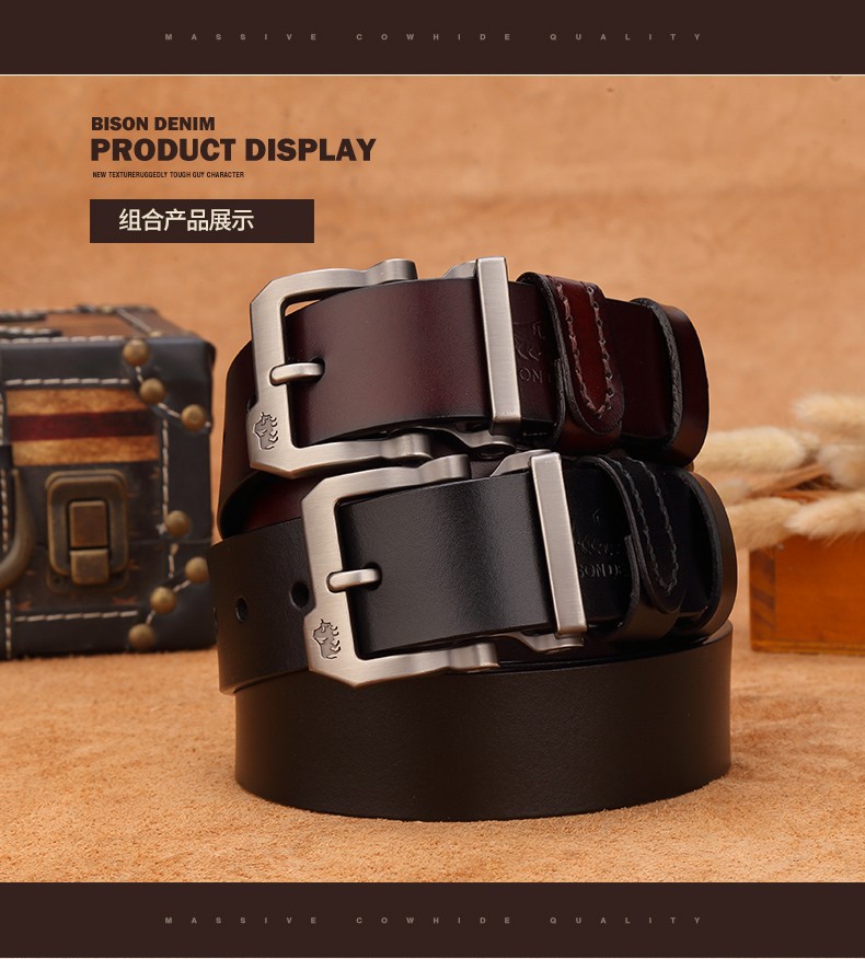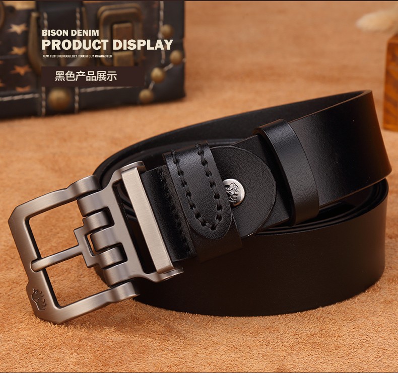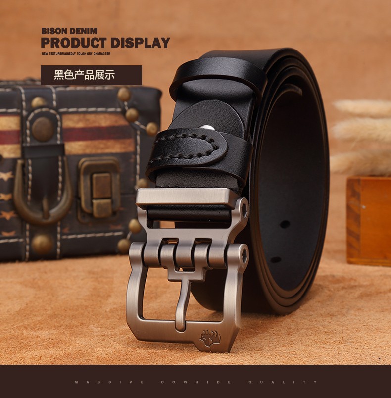 Bò Rừng Mỹ Thắt Lưng Nam Thắt Lưng Da Thật Nam Đa Năng Lớp Trên Thắt Lưng Da Bò Nguyên Chất Kinh Doanh Khóa Pin Denim