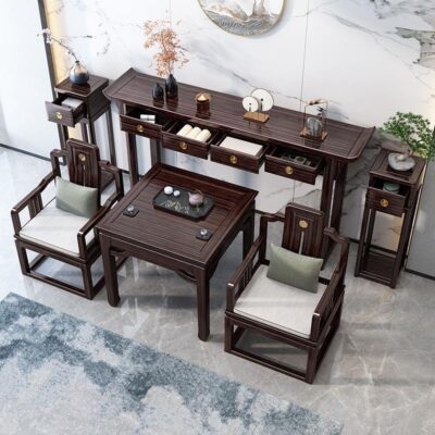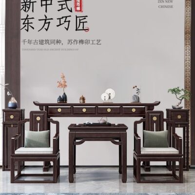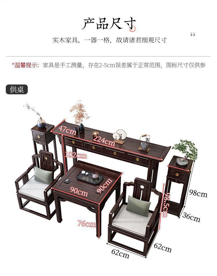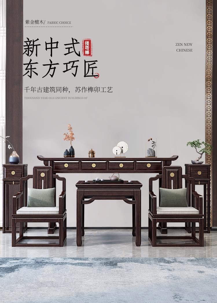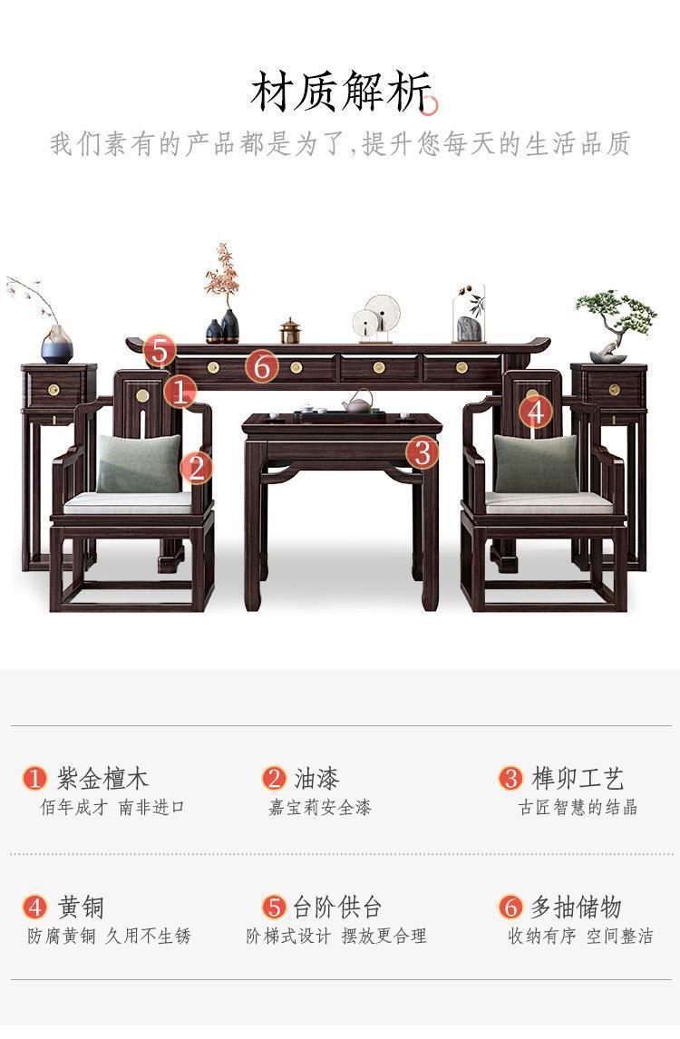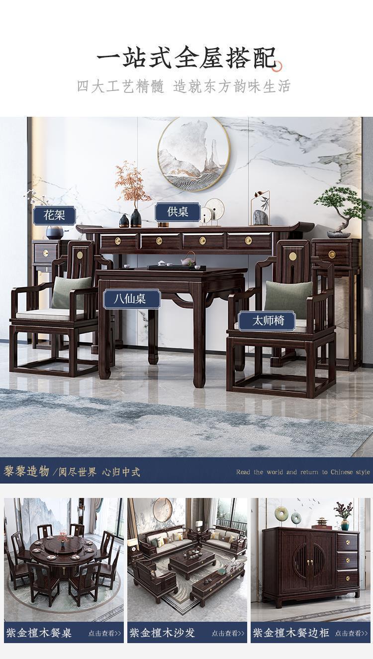 Bộ sáu món bằng gỗ nguyên khối mới của Trung Quốc tại sảnh giữa Taishi ghế gỗ đàn hương vàng tím thần tài bàn cúng tám bàn bất tử hộp đựng bàn thần hiên nhà