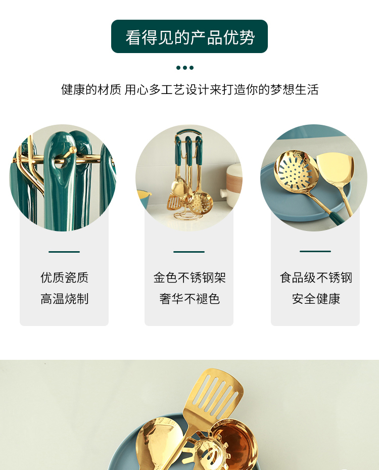 Bộ thìa ăn bảy món có giá trị cao Bộ dụng cụ nhà bếp trọn bộ Bộ thìa xẻng Dụng cụ nhà bếp Bắc Âu