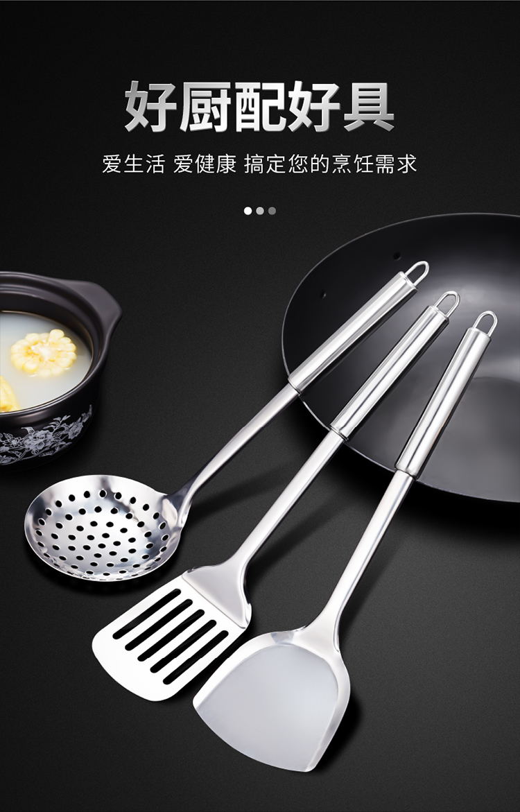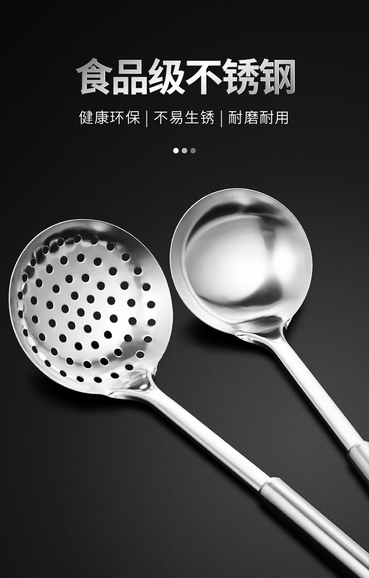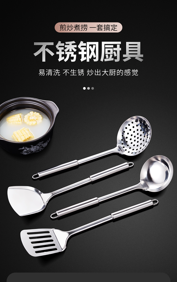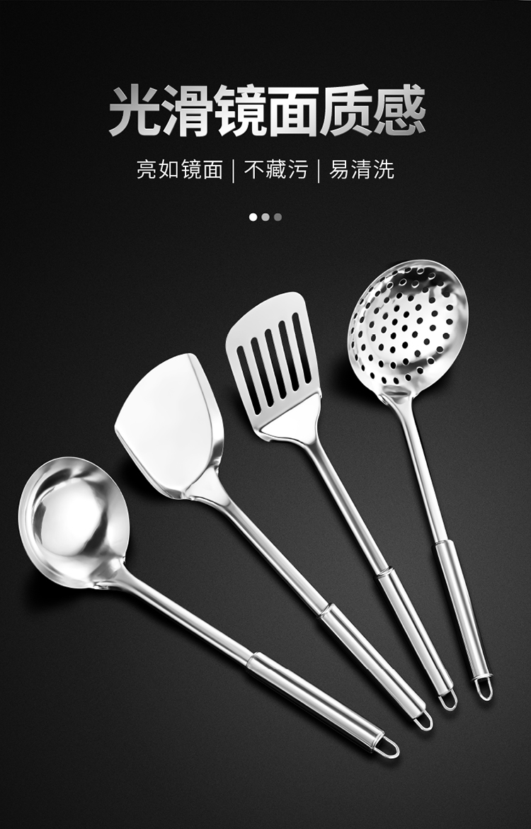 Bộ thìa thìa bằng thép không gỉ nhà bếp đồ dùng nhà bếp cán dài không nóng tay rán thìa nấu ăn thìa dao thìa