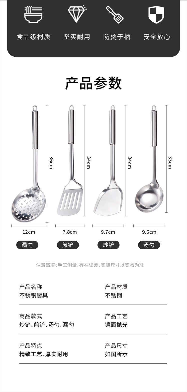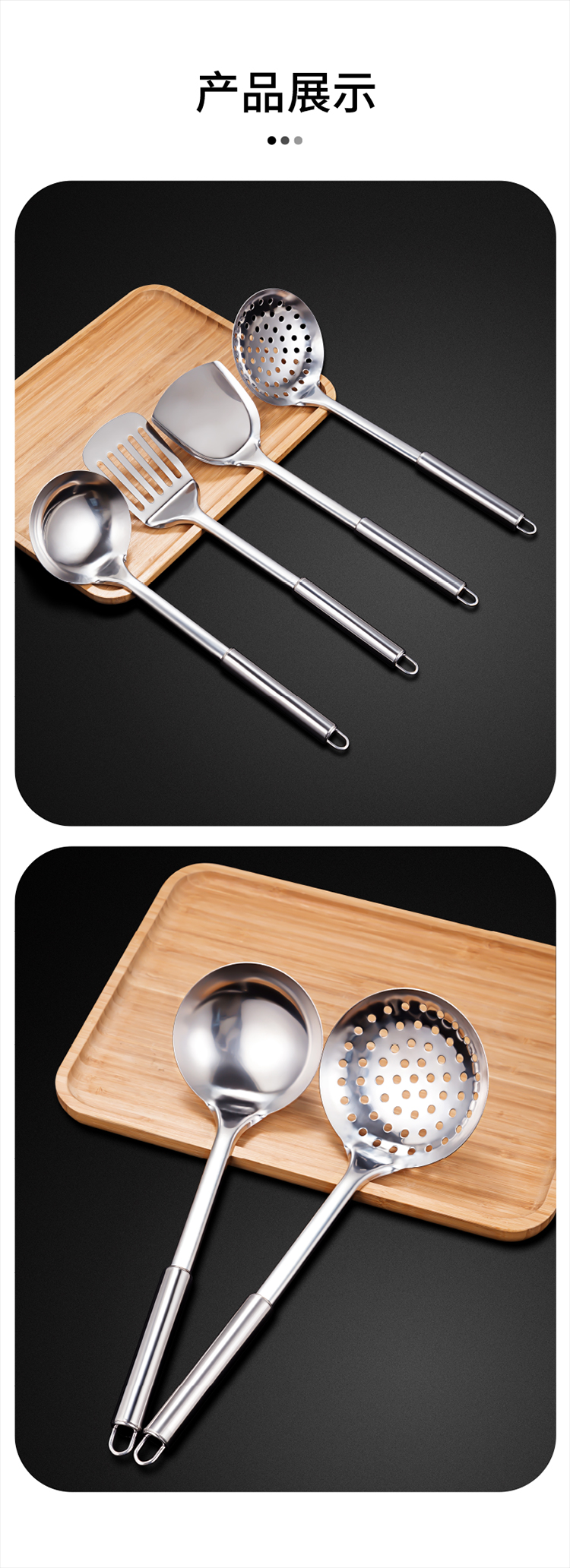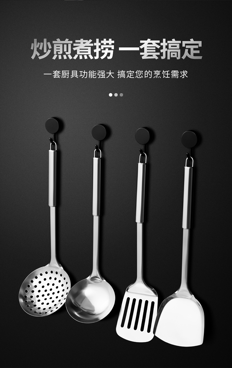Bộ thìa thìa bằng thép không gỉ nhà bếp đồ dùng nhà bếp cán dài không nóng tay rán thìa nấu ăn thìa dao thìa