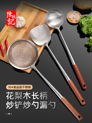 Bộ thìa và thìa chiên Chen Zhiji bằng thép không gỉ 304 xẻng nấu ăn gia dụng bằng gỗ dài dụng cụ nhà bếp đặc biệt của đầu bếp