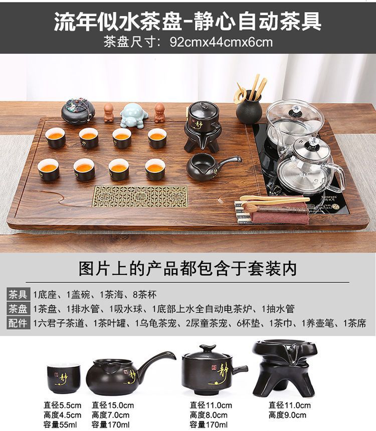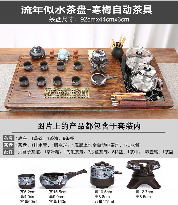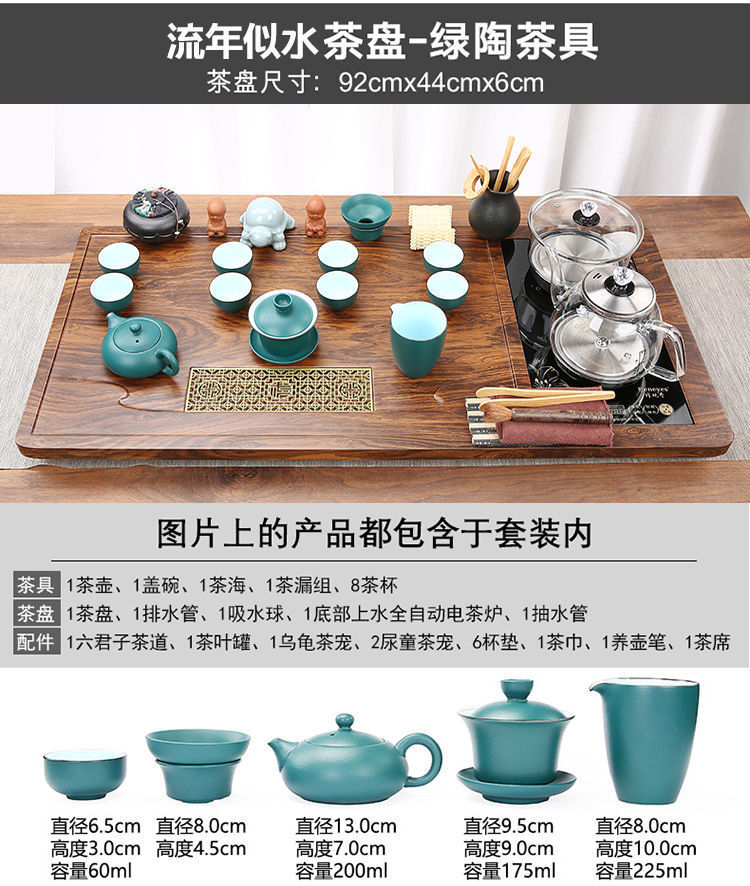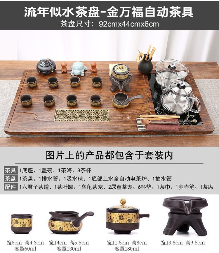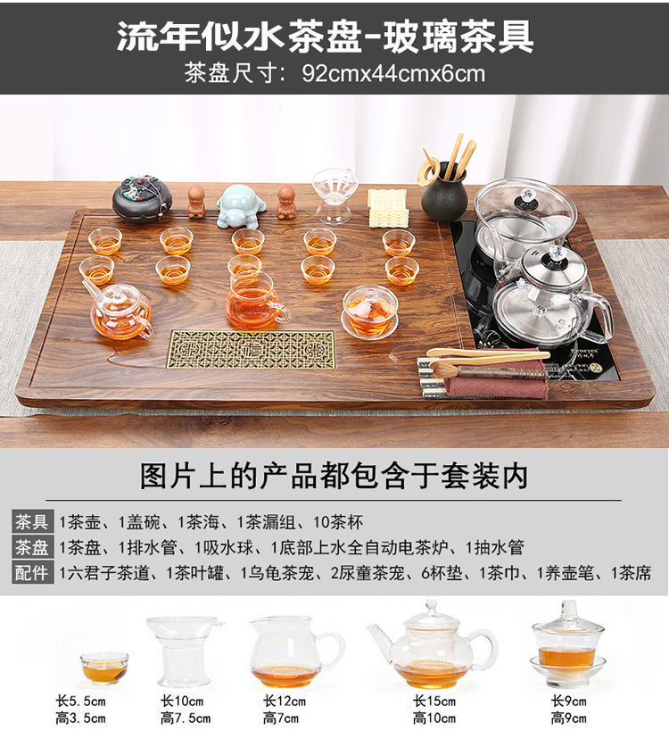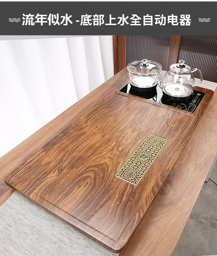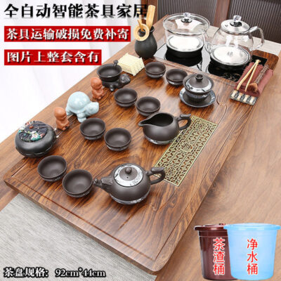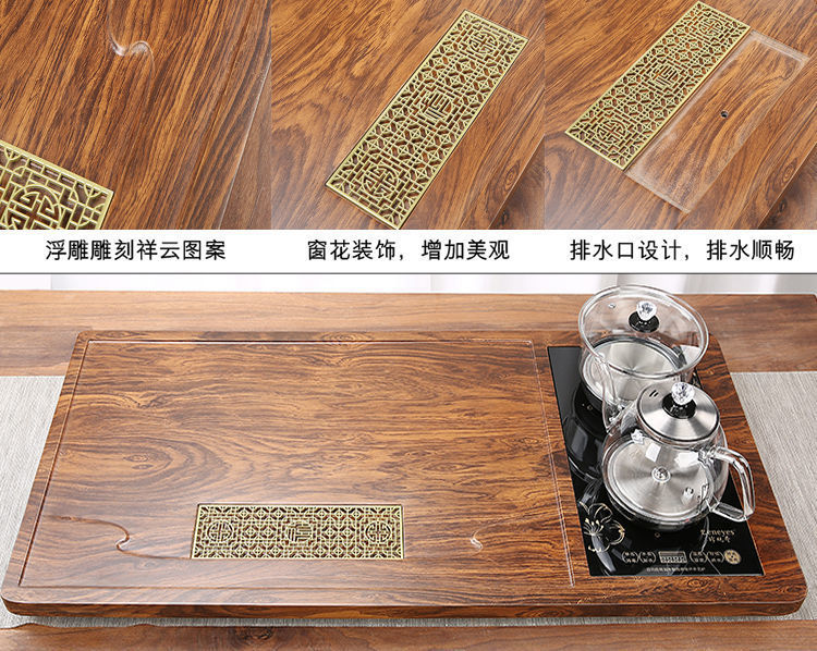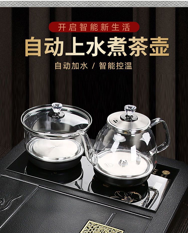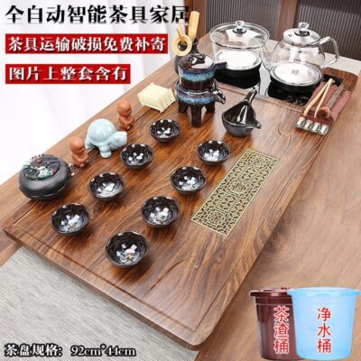 Bộ trà khay trà lớn dính liền bộ bàn trà hoàn chỉnh khay trà tự động ấm thủy tinh lò điện thông minh