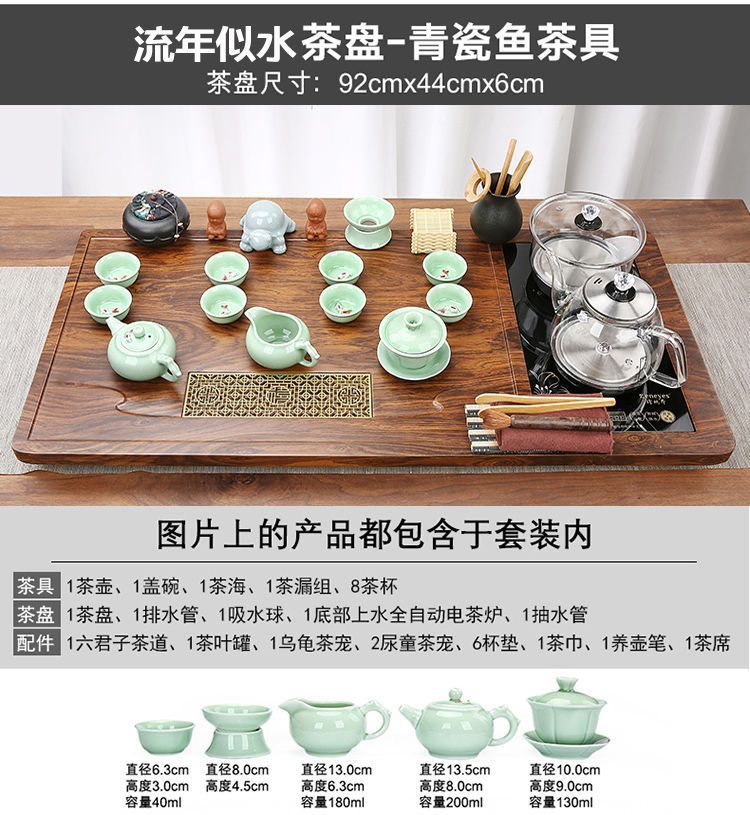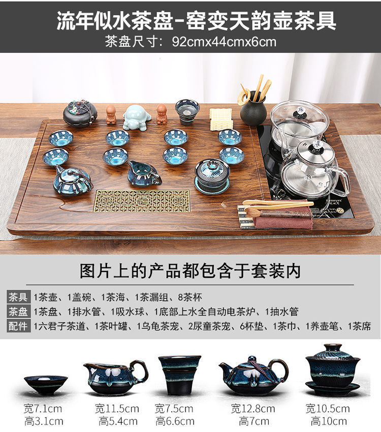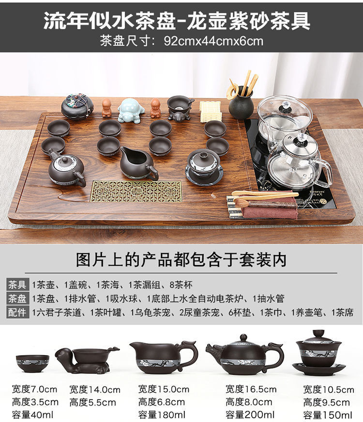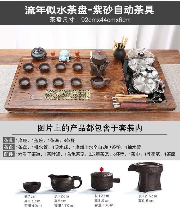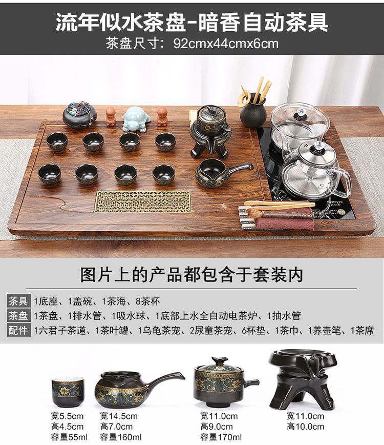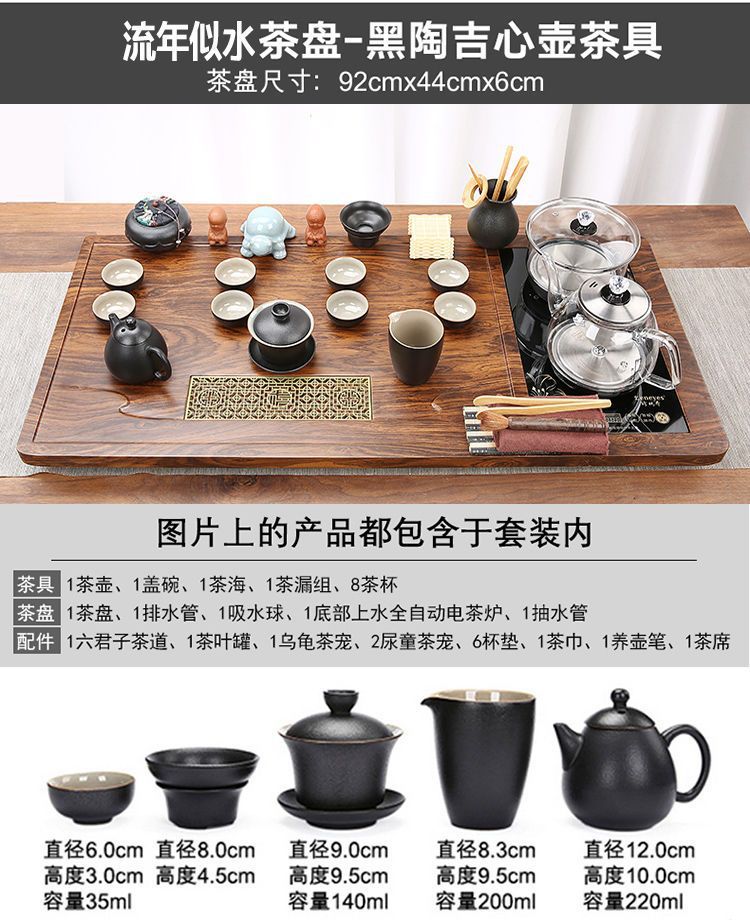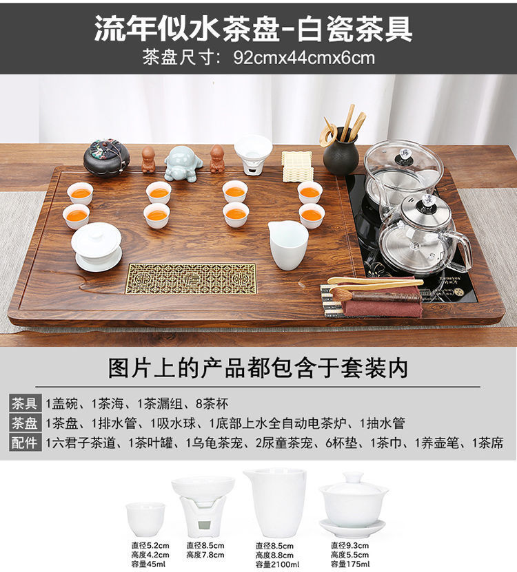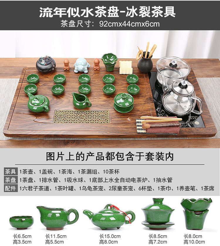 Bộ trà khay trà lớn dính liền bộ bàn trà hoàn chỉnh khay trà tự động ấm thủy tinh lò điện thông minh