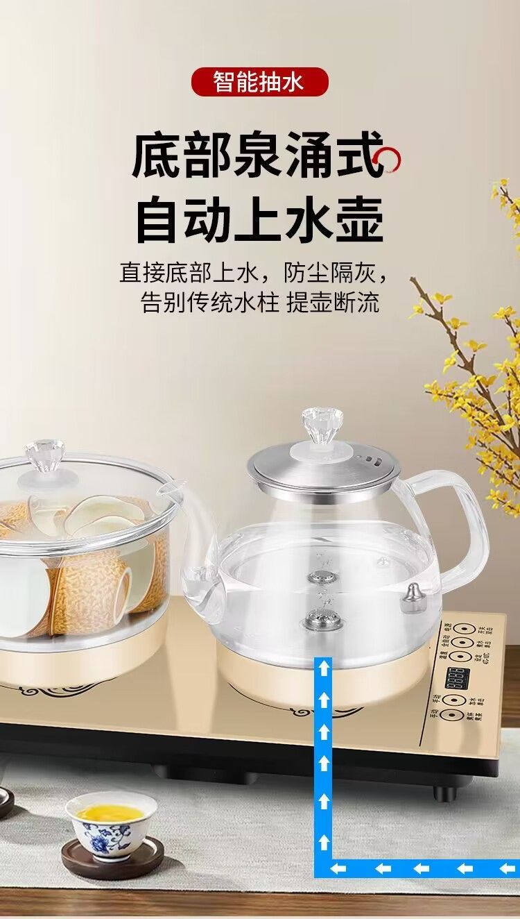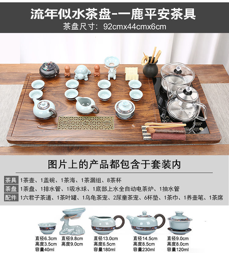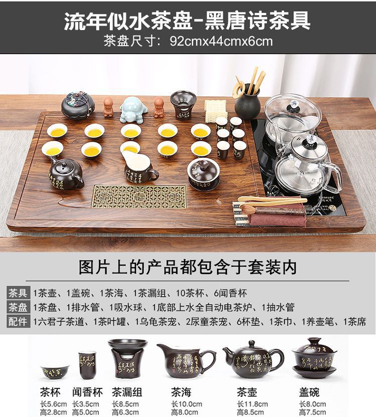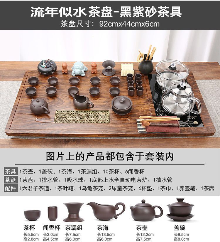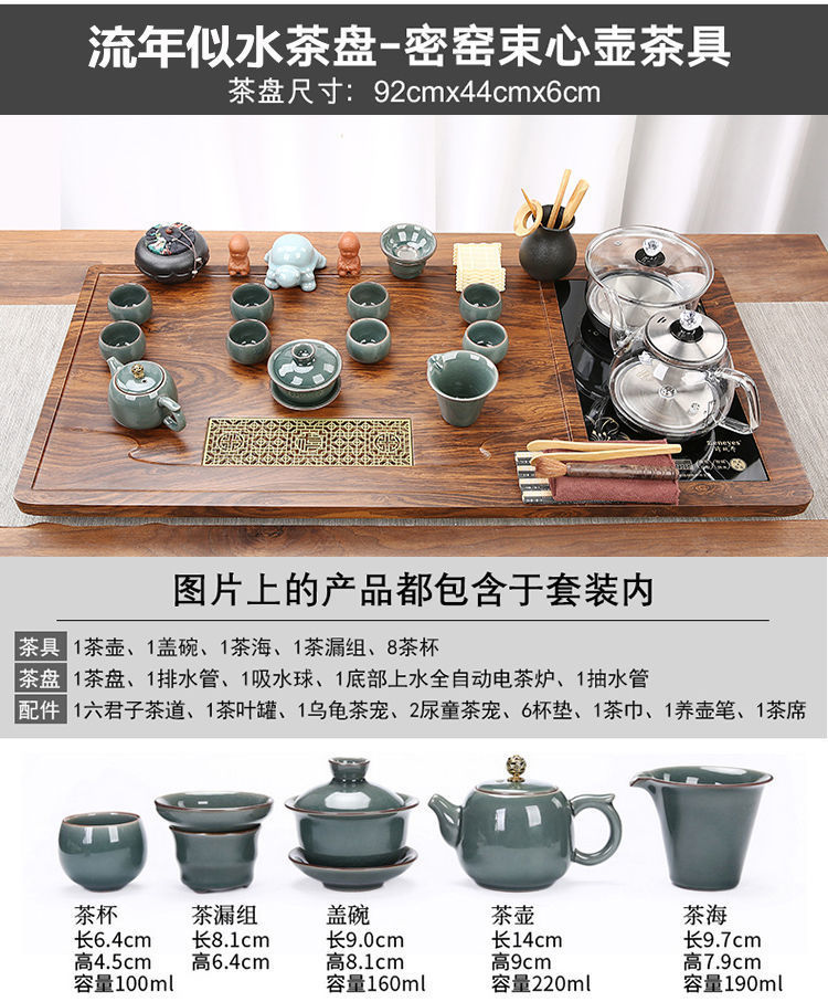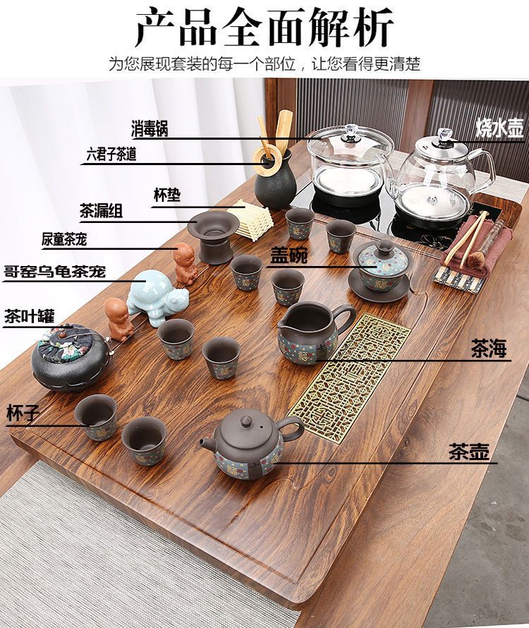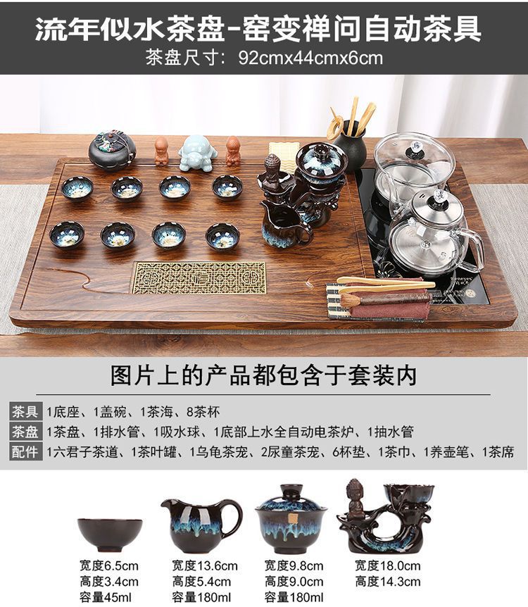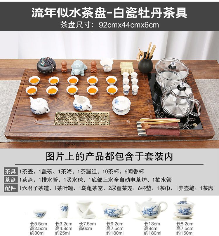 Bộ trà khay trà lớn dính liền bộ bàn trà hoàn chỉnh khay trà tự động ấm thủy tinh lò điện thông minh