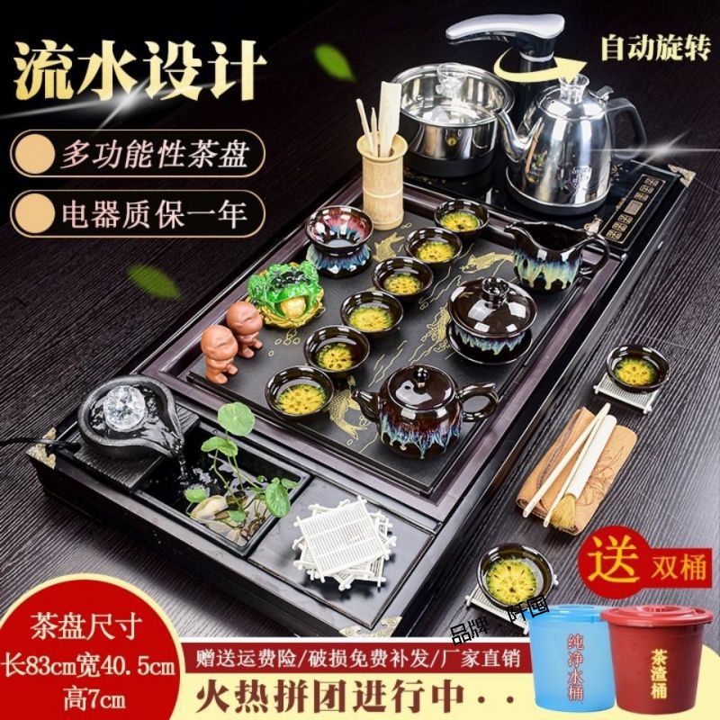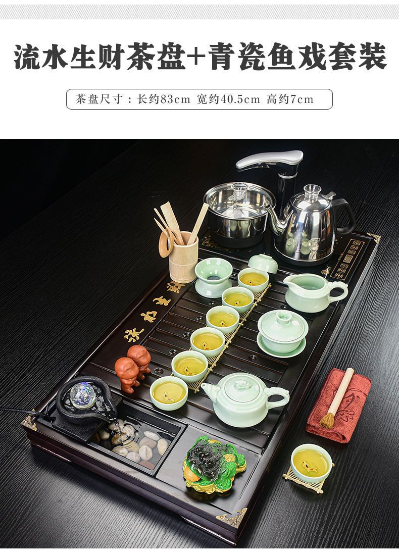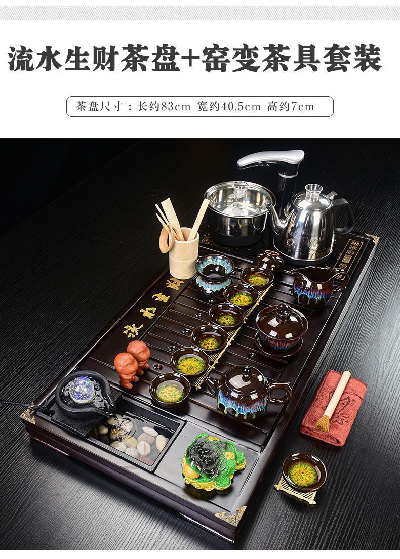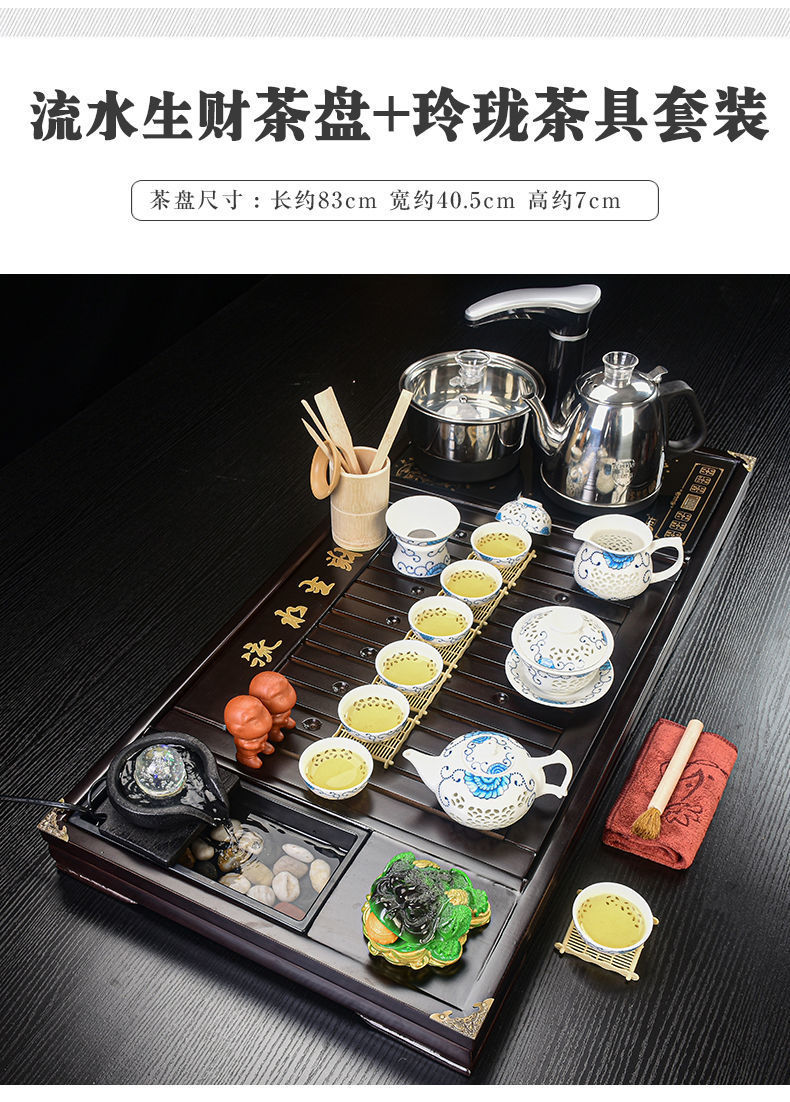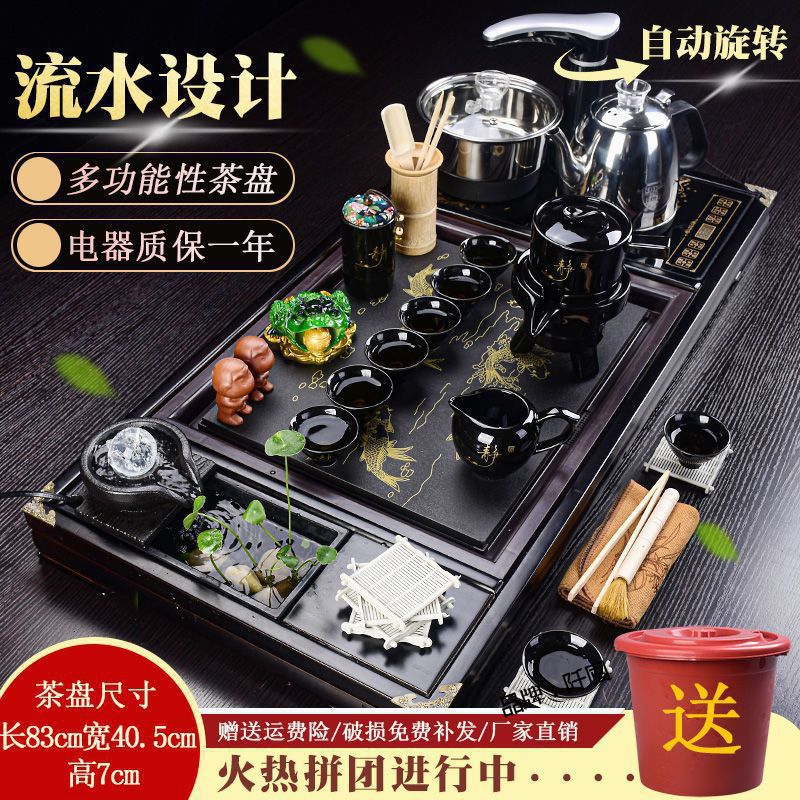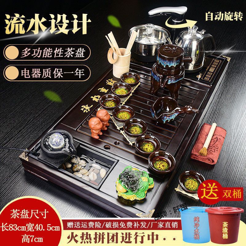 Bộ trà Kung Fu nước chảy khay trà may mắn trọn bộ ấm trà tự động khay trà gỗ đặc bàn trà