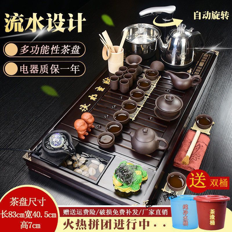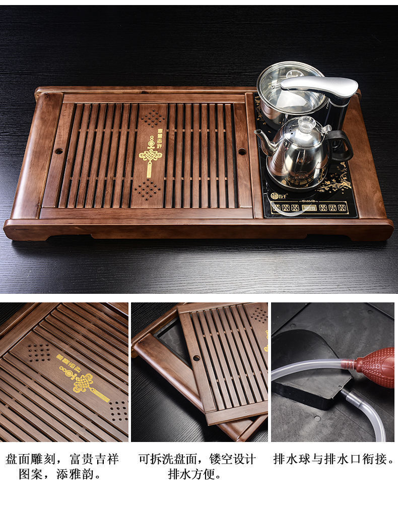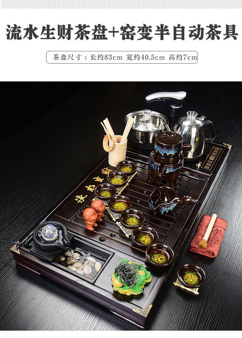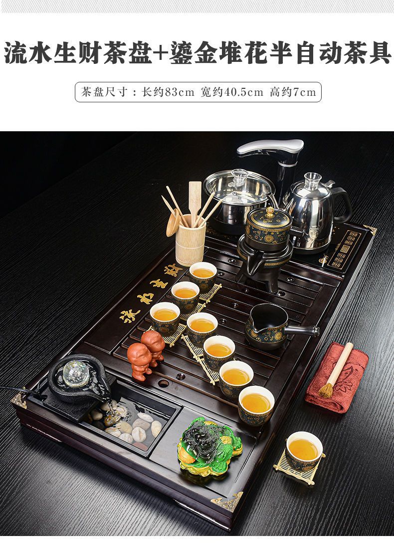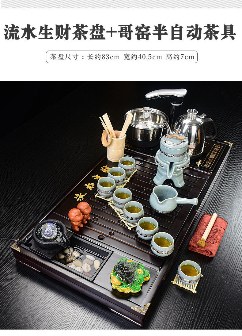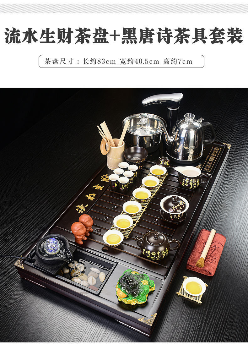 Bộ trà Kung Fu nước chảy khay trà may mắn trọn bộ ấm trà tự động khay trà gỗ đặc bàn trà