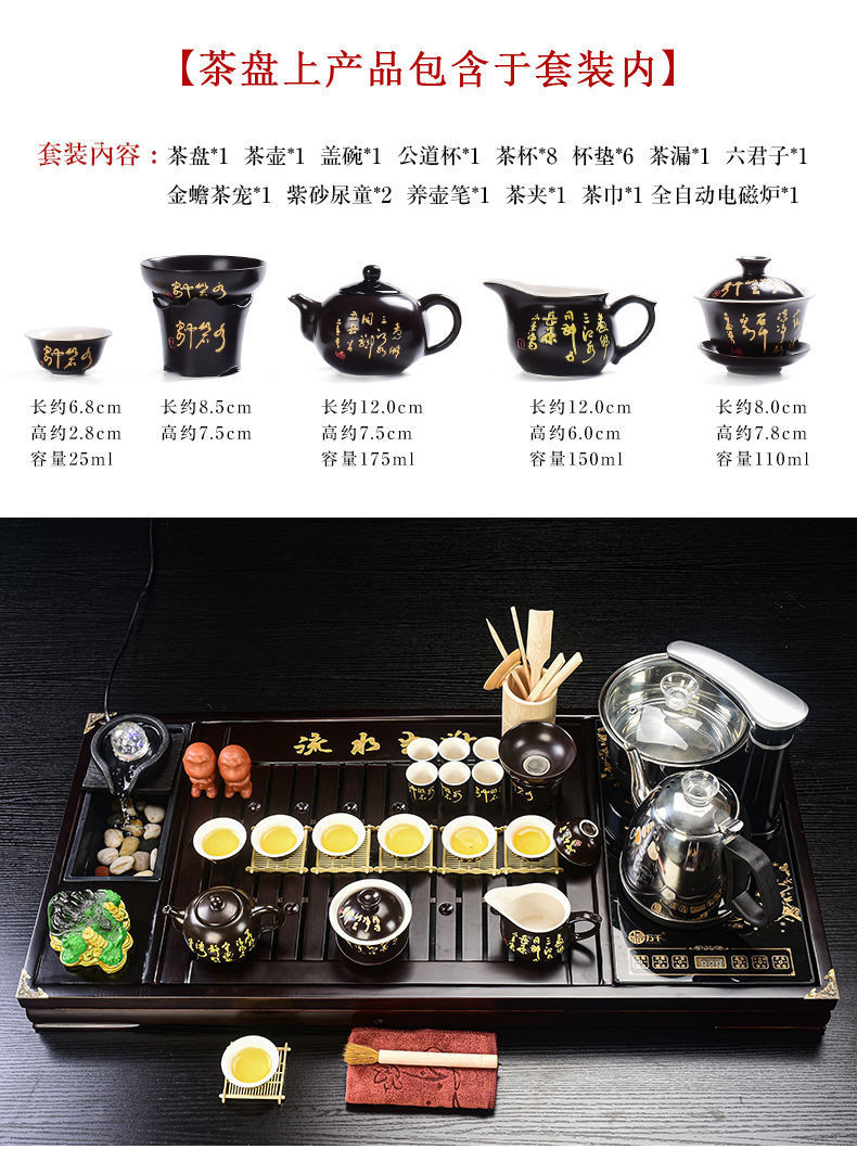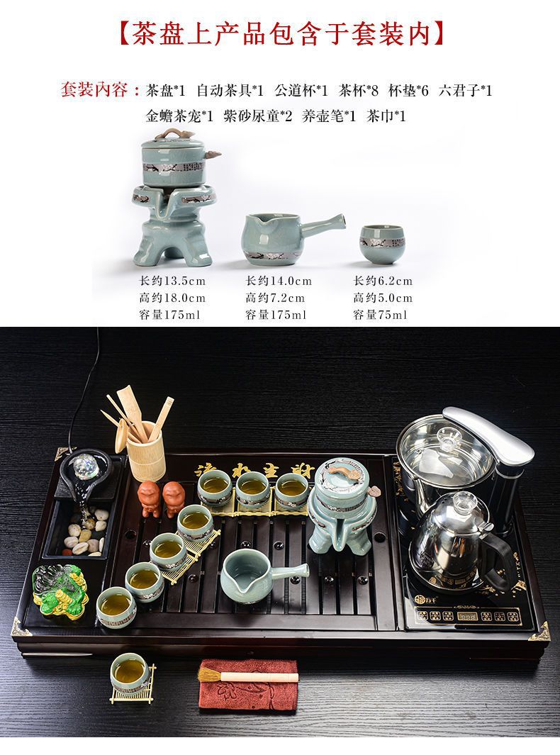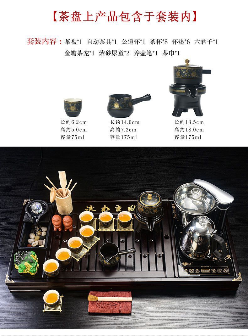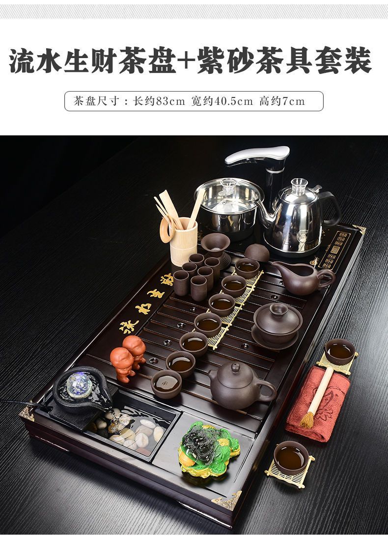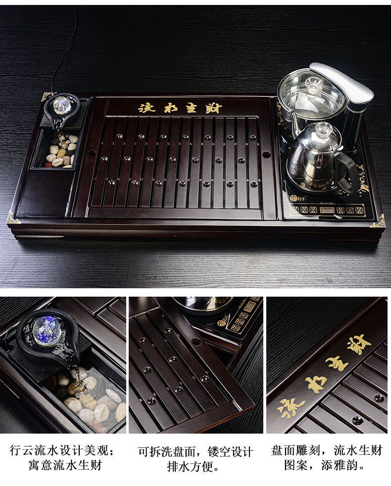 Bộ trà Kung Fu nước chảy khay trà may mắn trọn bộ ấm trà tự động khay trà gỗ đặc bàn trà