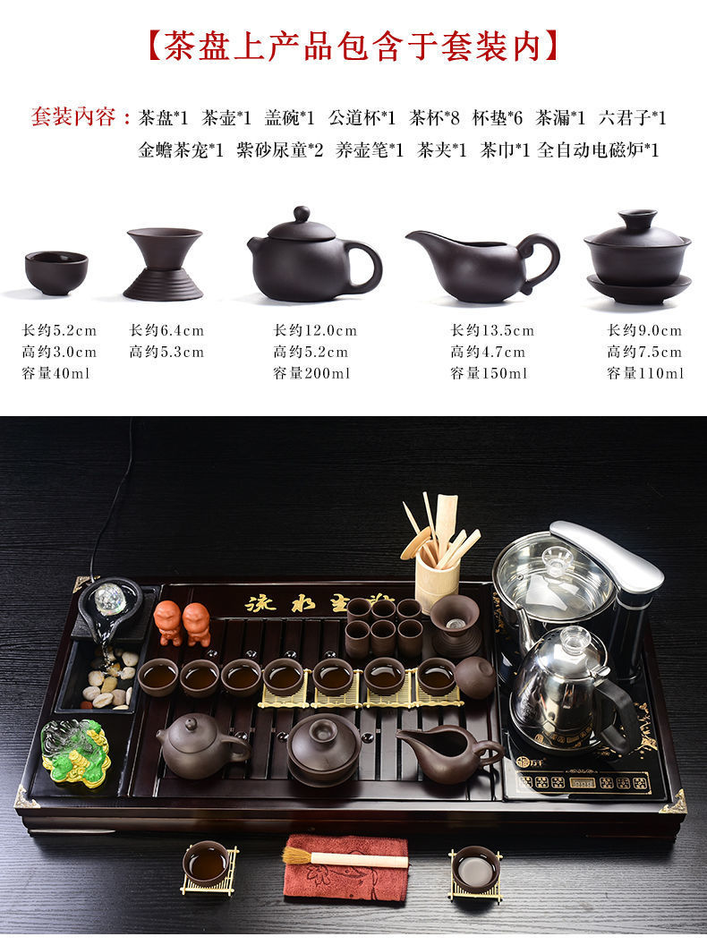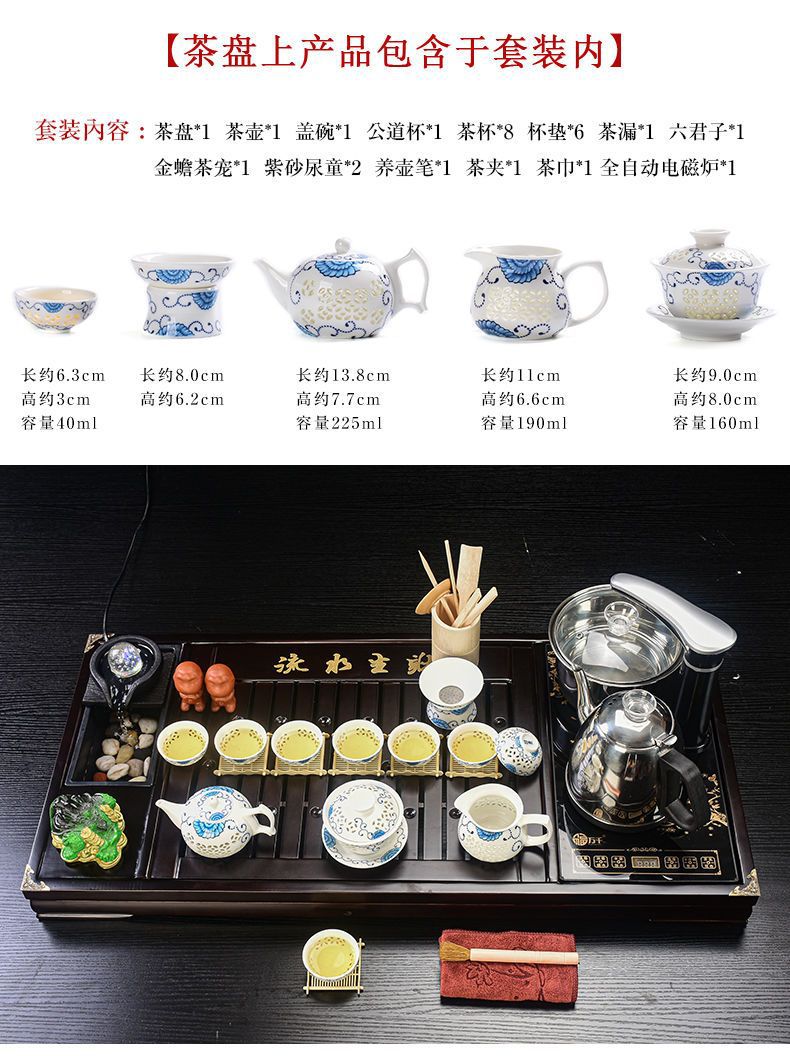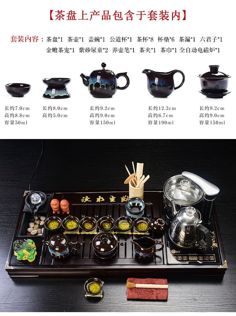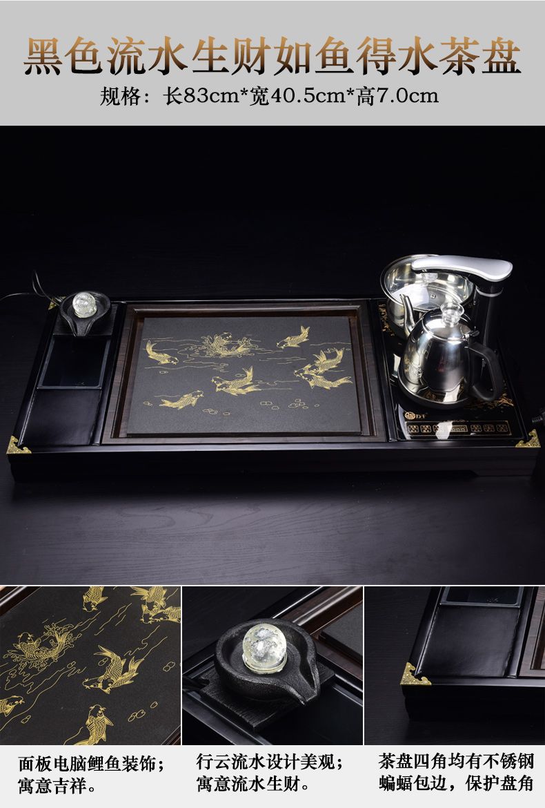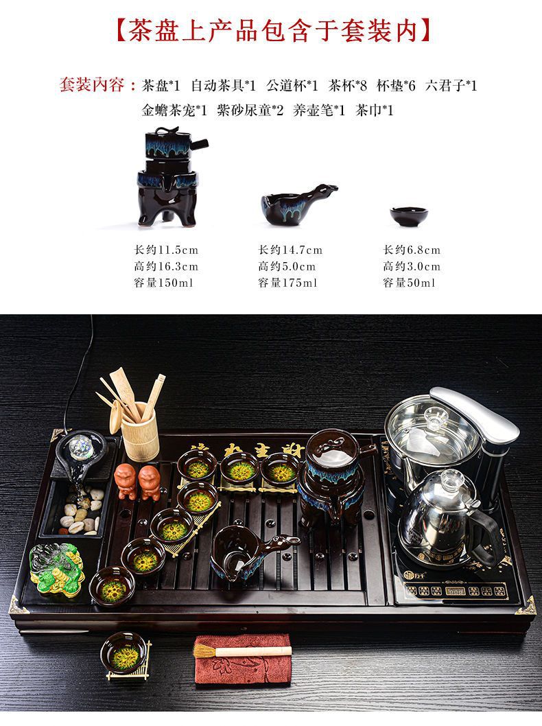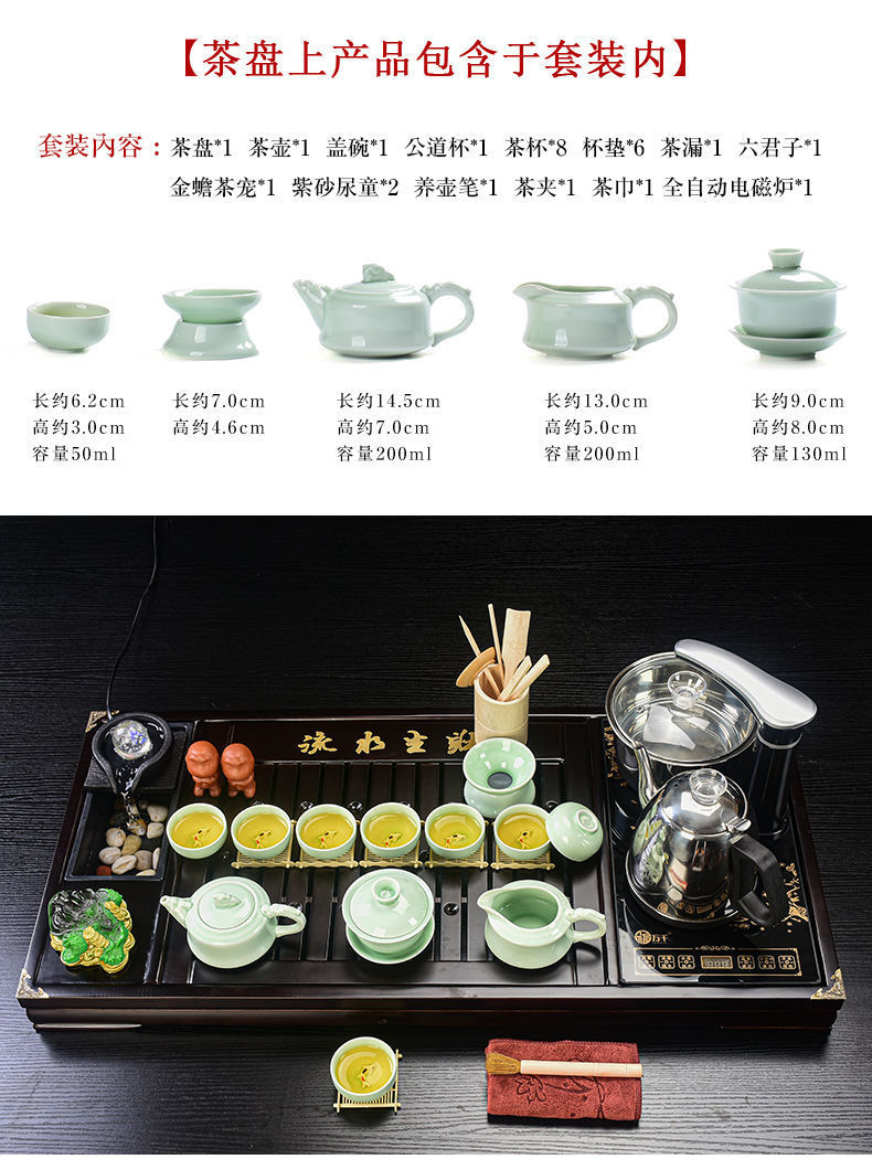 Bộ trà Kung Fu nước chảy khay trà may mắn trọn bộ ấm trà tự động khay trà gỗ đặc bàn trà