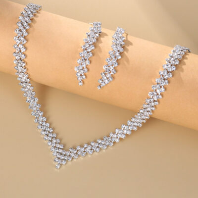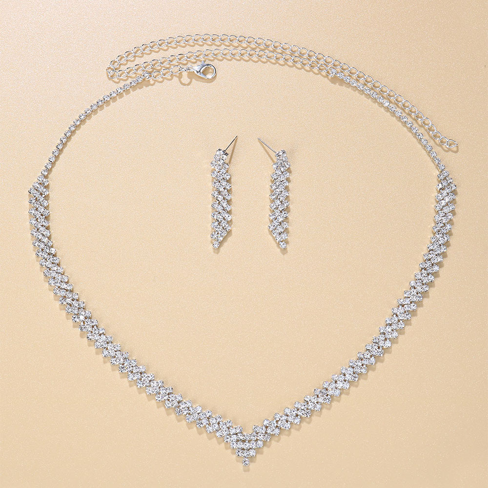 Bộ trang sức bán chạy xuyên biên giới châu Âu và châu Mỹ bộ vòng cổ kim cương đầy đủ đa năng đơn giản cô dâu chuỗi vòng cổ vòng cổ bằng đá nhân tạo