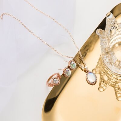 Bộ trang sức xu hướng kết hợp đá quý rực rỡ Bộ thời trang Âu Mỹ mới ba mảnh bông tai vòng cổ bộ nhẫn