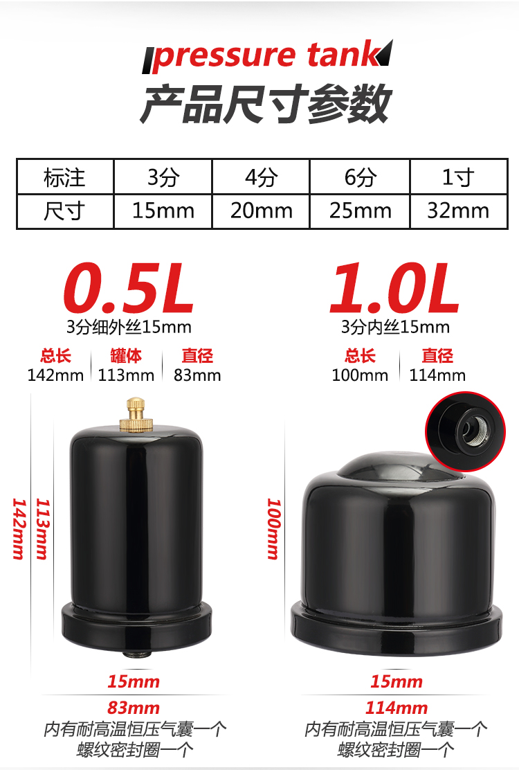 Bơm Tự Mồi Áp Lực Hộ Gia Đình Tự Động Bơm Tăng Áp 1L2L5L19L24L Bình Áp Lực Khí Bình Chứa Máy Bơm Nước Túi Khí