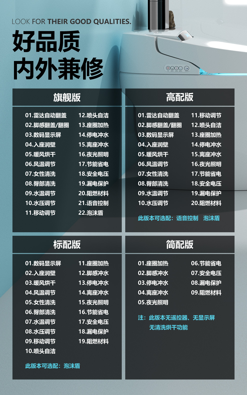 Bồn cầu thông minh bồn cầu gốm hộ gia đình mô hình kỹ thuật tích hợp cảm ứng điện tự động điều khiển từ xa sưởi ấm xả nước