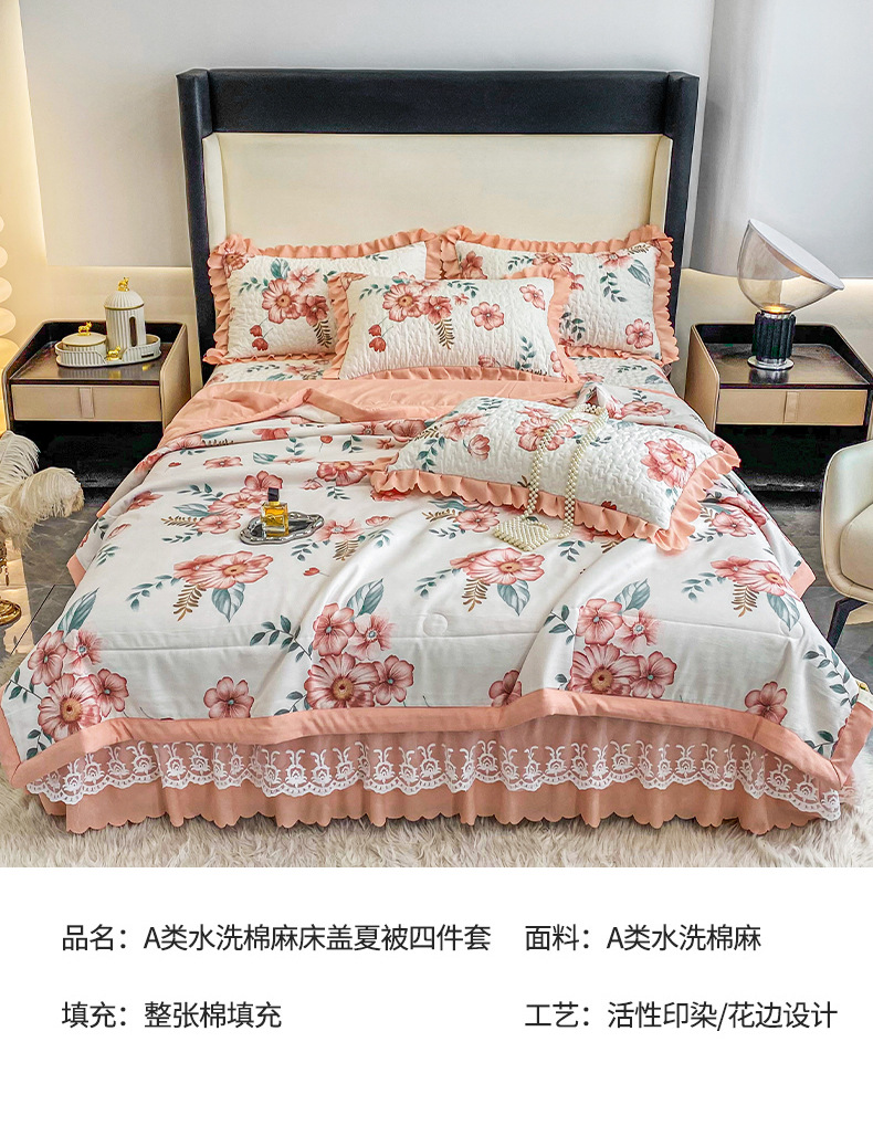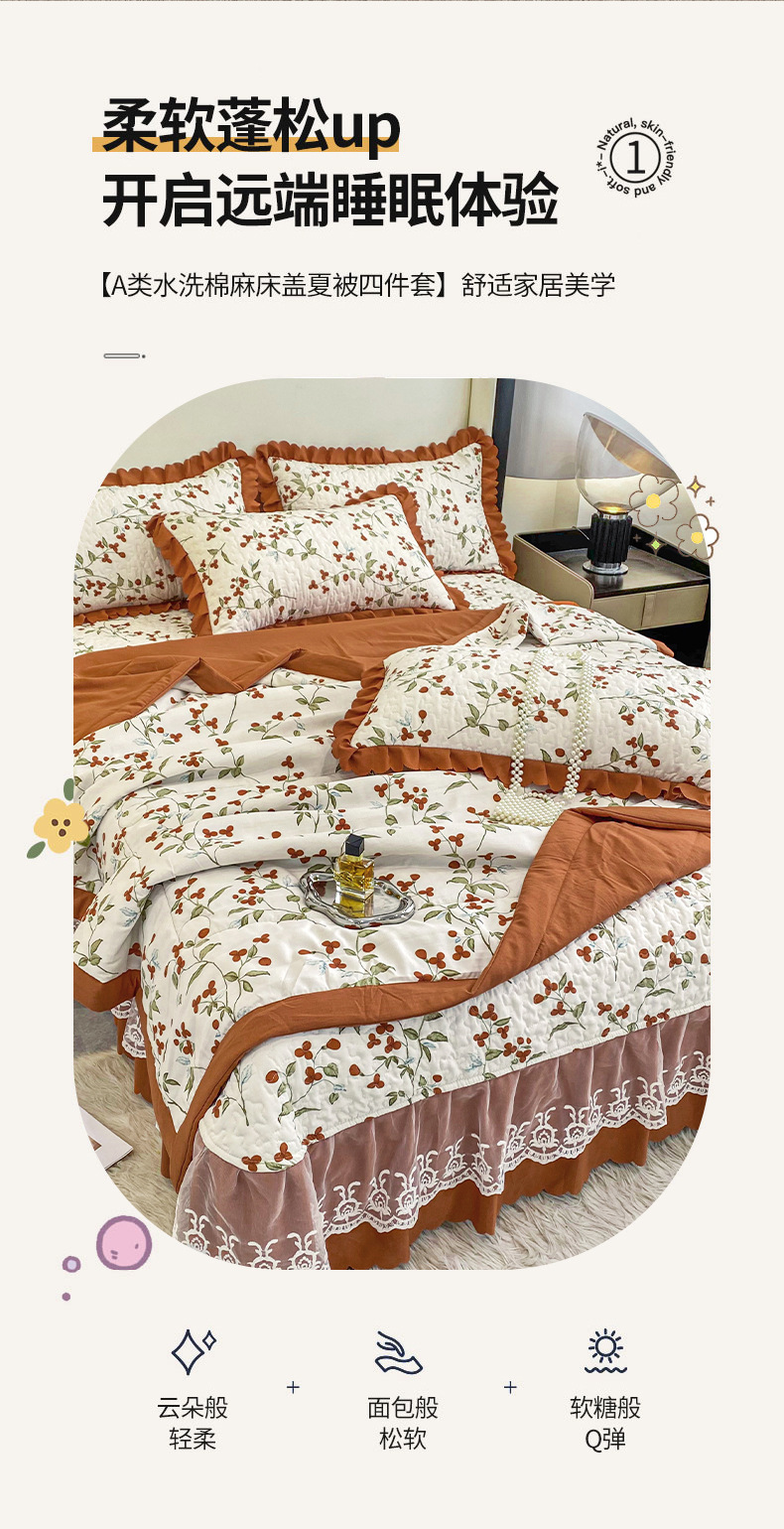 Bốn Mùa Mới Giặt Vải Lanh Cotton Mùa Hè Mát Mẻ Chăn Bốn Mảnh Trải Giường Hút Ẩm Thoáng Khí Chiếu Tatami Kang Chăn Giường Bán Buôn