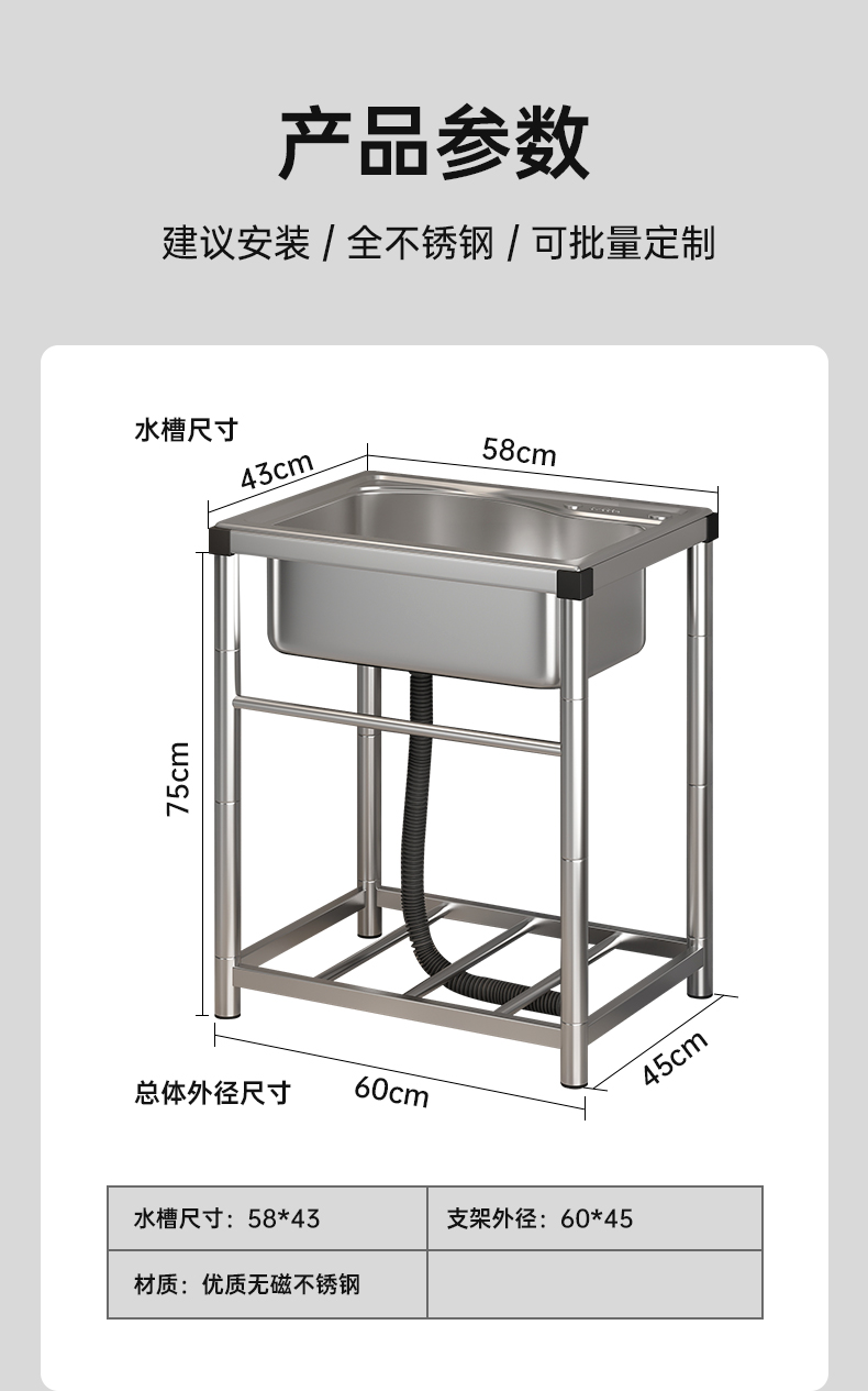 Bồn rửa chén inox dày nhà bếp 304 bồn rửa chén gia đình bồn rửa đơn có giá đỡ tích hợp bồn rửa thương mại để rửa rau củ là thiết bị nằm trong danh mục Đồ nhà hàng > Chậu rửa, được thiết kế chuyên dụng cho các nhà hàng cần sự tiện nghi và chuyên nghiệp.