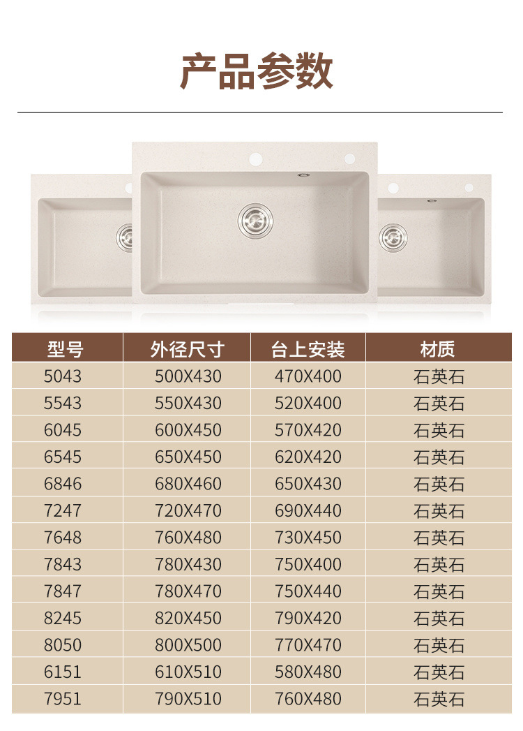 Sản phẩm nổi bật với các tính năng: Bồn rửa nhà bếp bằng đá thạch anh màu trắng kem, bồn rửa đơn lớn, bồn rửa nhỏ, đặt phía trên và phía dưới chậu rửa. Quý khách có nhu cầu mua Chậu rửa nhập khẩu vui lòng liên hệ với chúng tôi để được tư vấn hỗ trợ. Dịch vụ mua hàng Trung Quốc sẽ hỗ trợ quý khách mua hàng từ nhà cung cấp và giao tới tận tay quý khách hàng..
