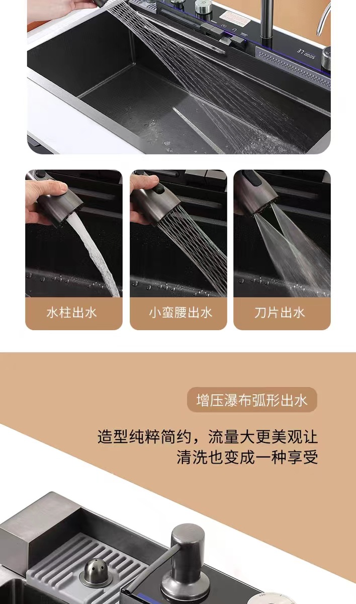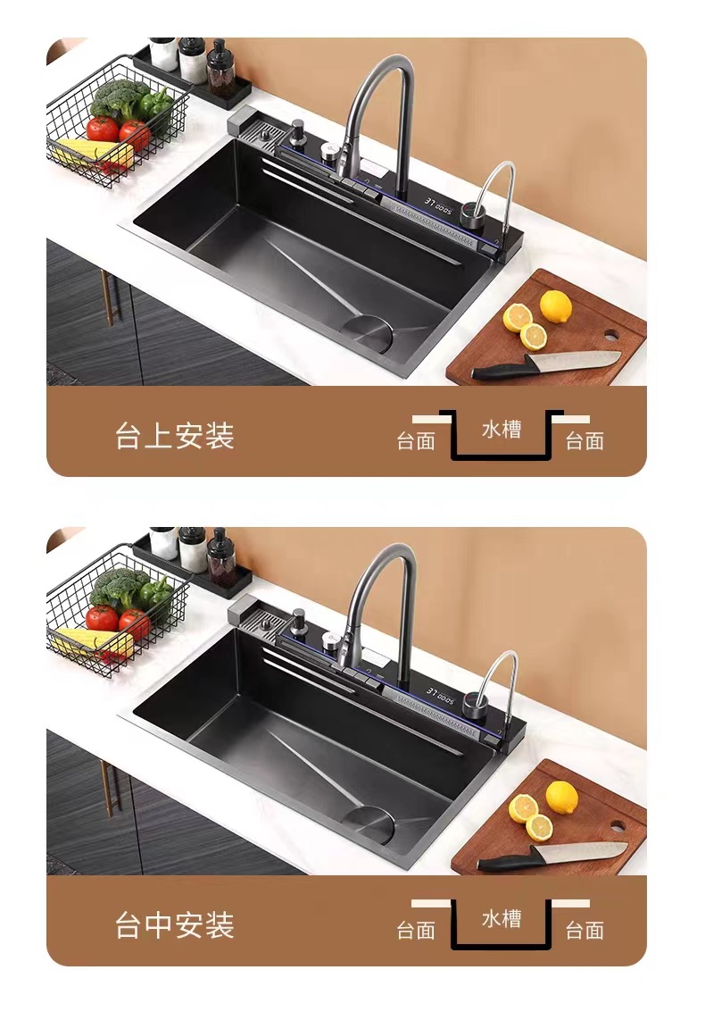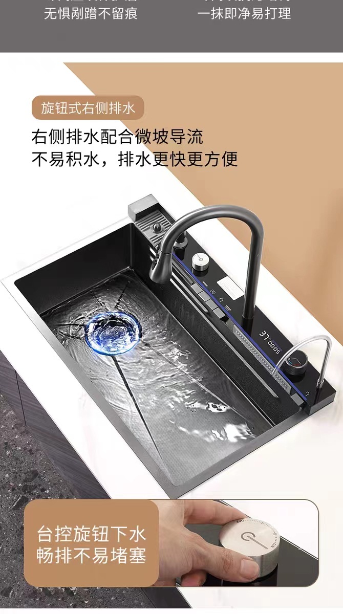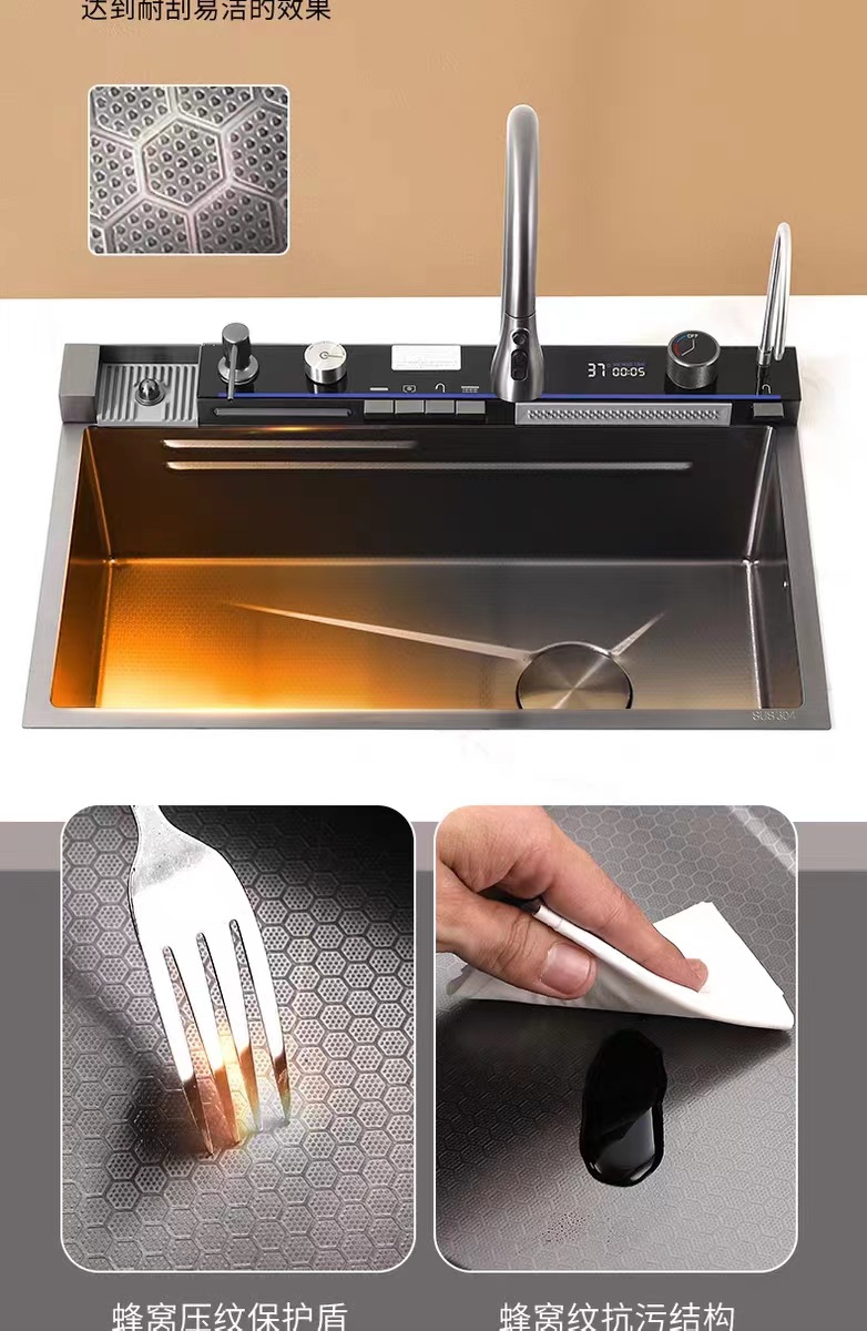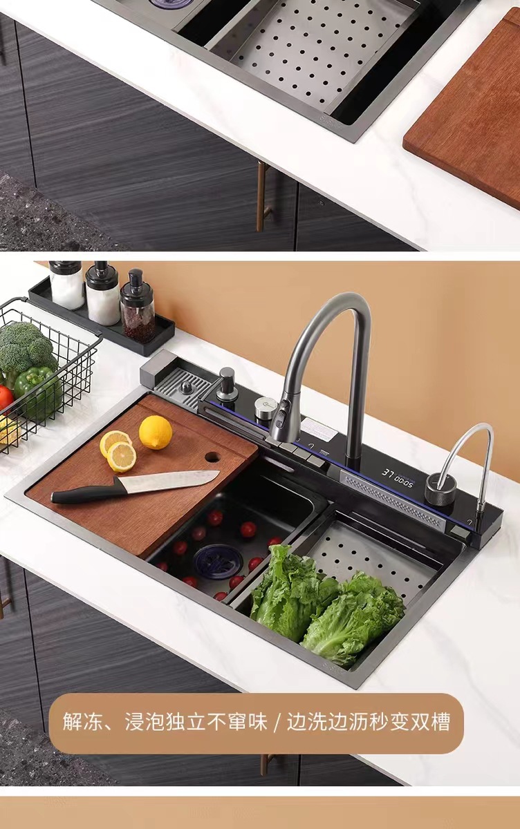 Bồn Rửa Nhà Bếp Màn Hình Hiển Thị Kỹ Thuật Số Màn Mưa Thác Nước Tích Hợp Bồn Rửa Bát Handmade Bộ Thép Không Gỉ Dưới Chậu Rửa Bồn Rửa Đơn Lớn là thiết bị nằm trong danh mục Đồ nhà hàng > Chậu rửa, được thiết kế chuyên dụng cho các nhà hàng cần sự tiện nghi và chuyên nghiệp.