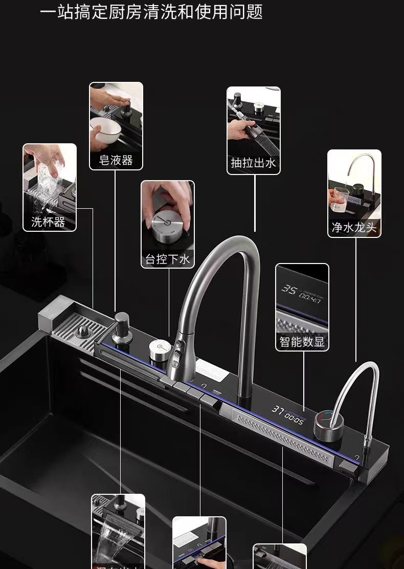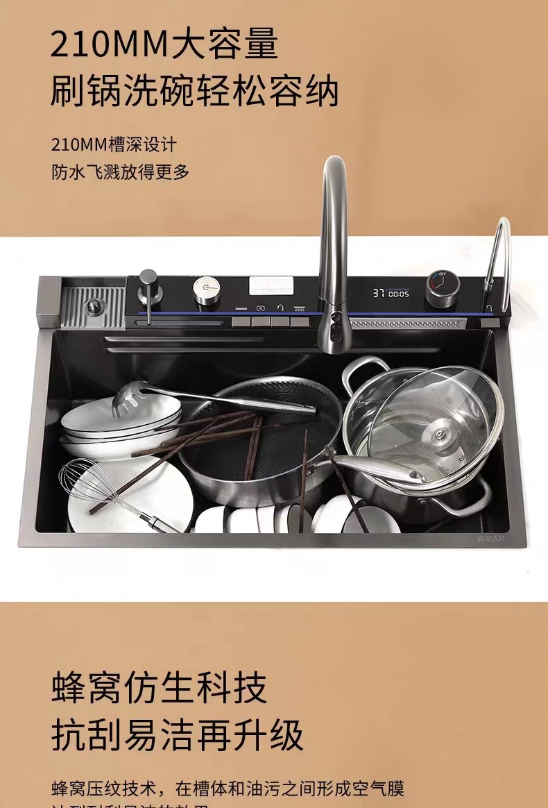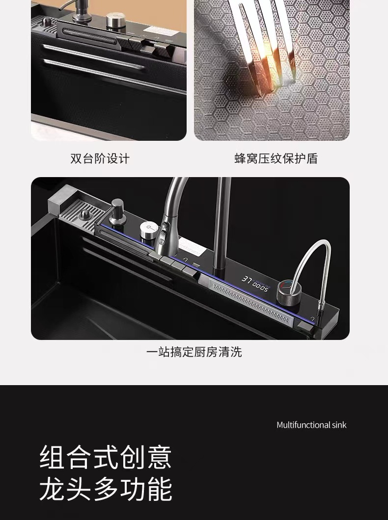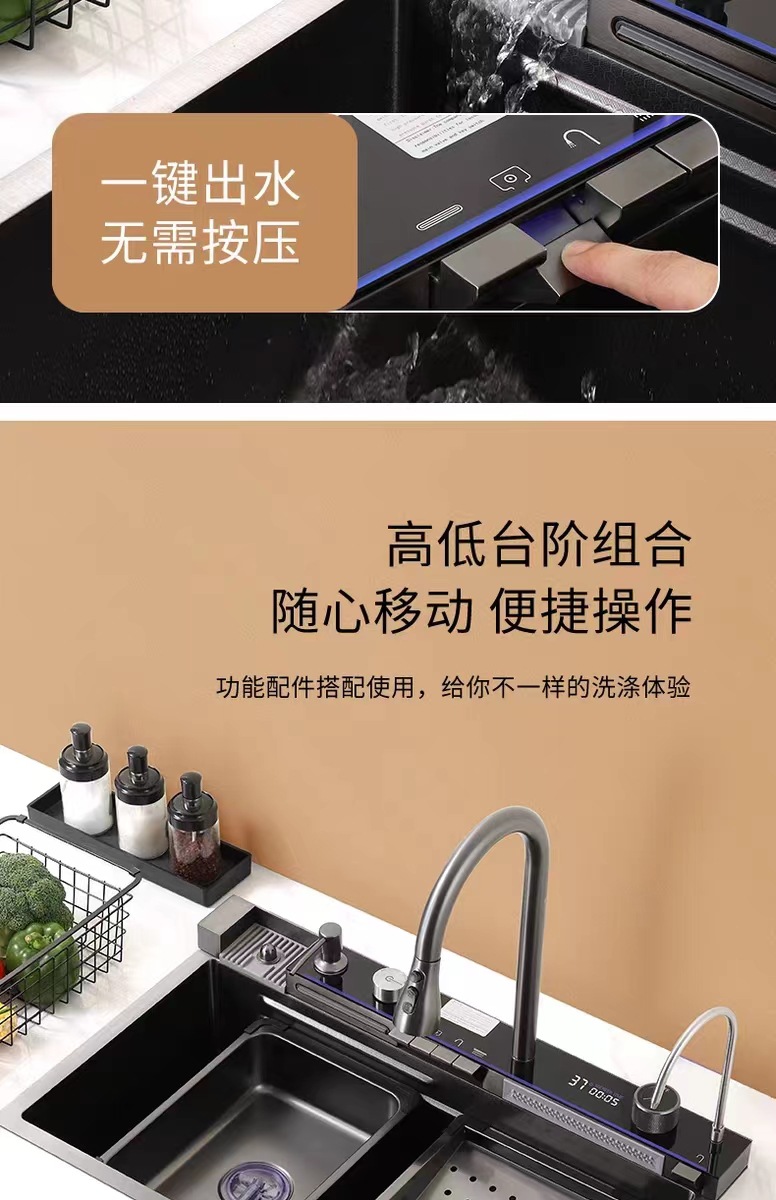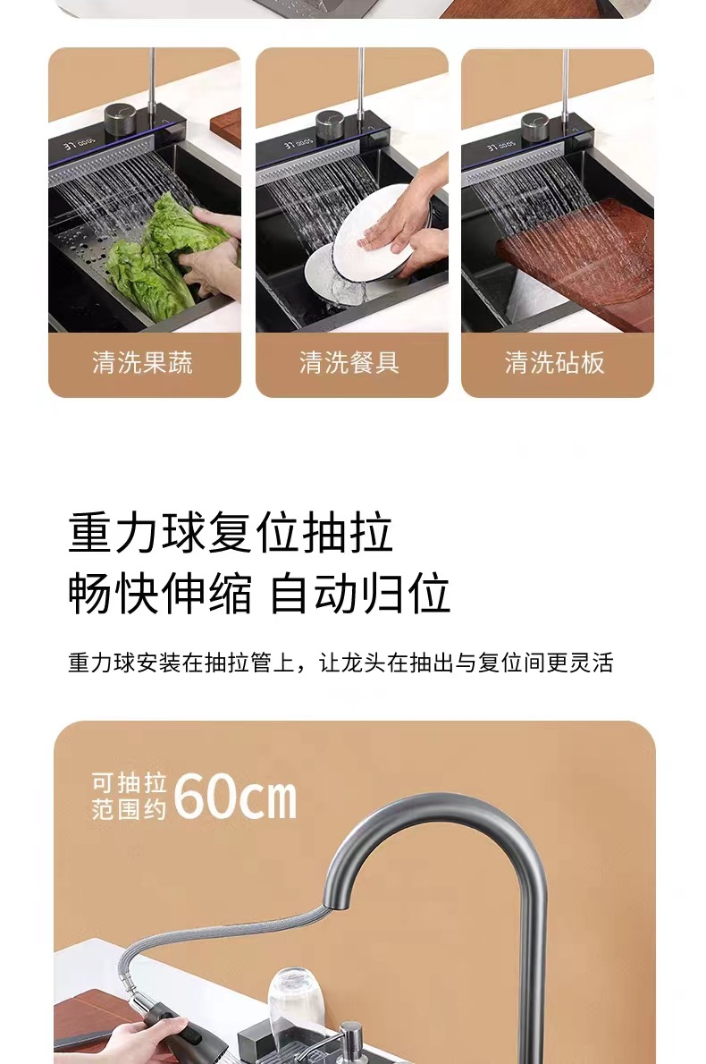 Bồn Rửa Nhà Bếp Màn Hình Hiển Thị Kỹ Thuật Số Màn Mưa Thác Nước Tích Hợp Bồn Rửa Bát Handmade Bộ Thép Không Gỉ Dưới Chậu Rửa Bồn Rửa Đơn Lớn là thiết bị nằm trong danh mục Đồ nhà hàng > Chậu rửa, được thiết kế chuyên dụng cho các nhà hàng cần sự tiện nghi và chuyên nghiệp.