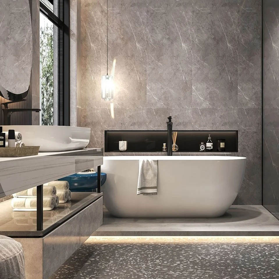 6.亚克力浴缸传热慢,因此保温性好,接触体表无“冰冷”感觉。与铸铁或钢板浴缸相比,更有一种“温暖、柔软”感,不会碰痛躯体。由于亚克力的加工性能较好,所以制造豪华的按摩浴缸非它莫属。