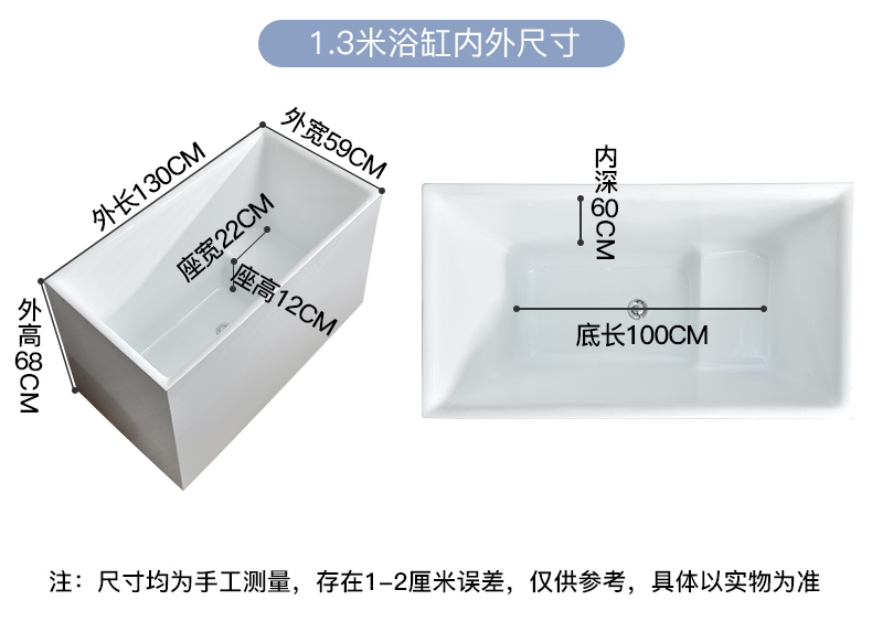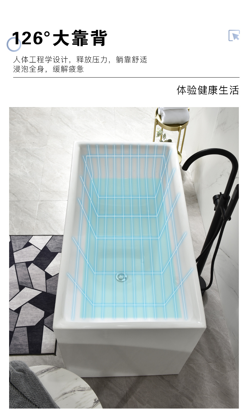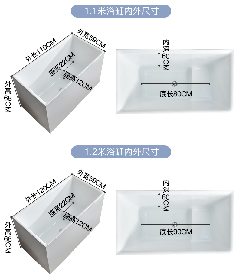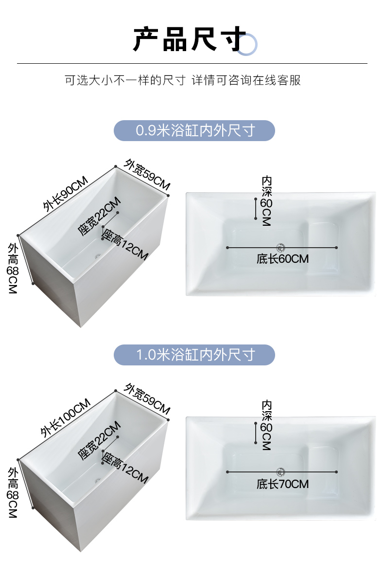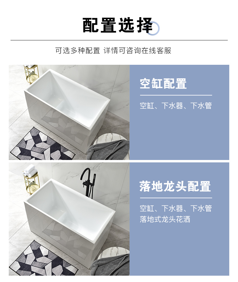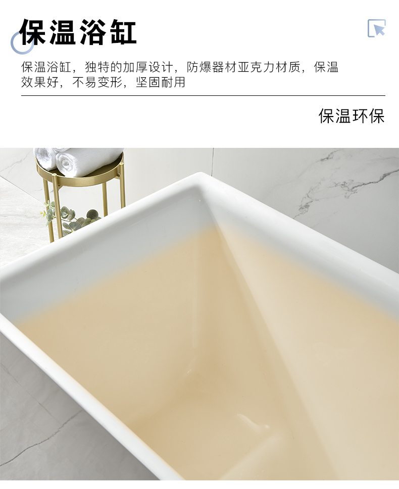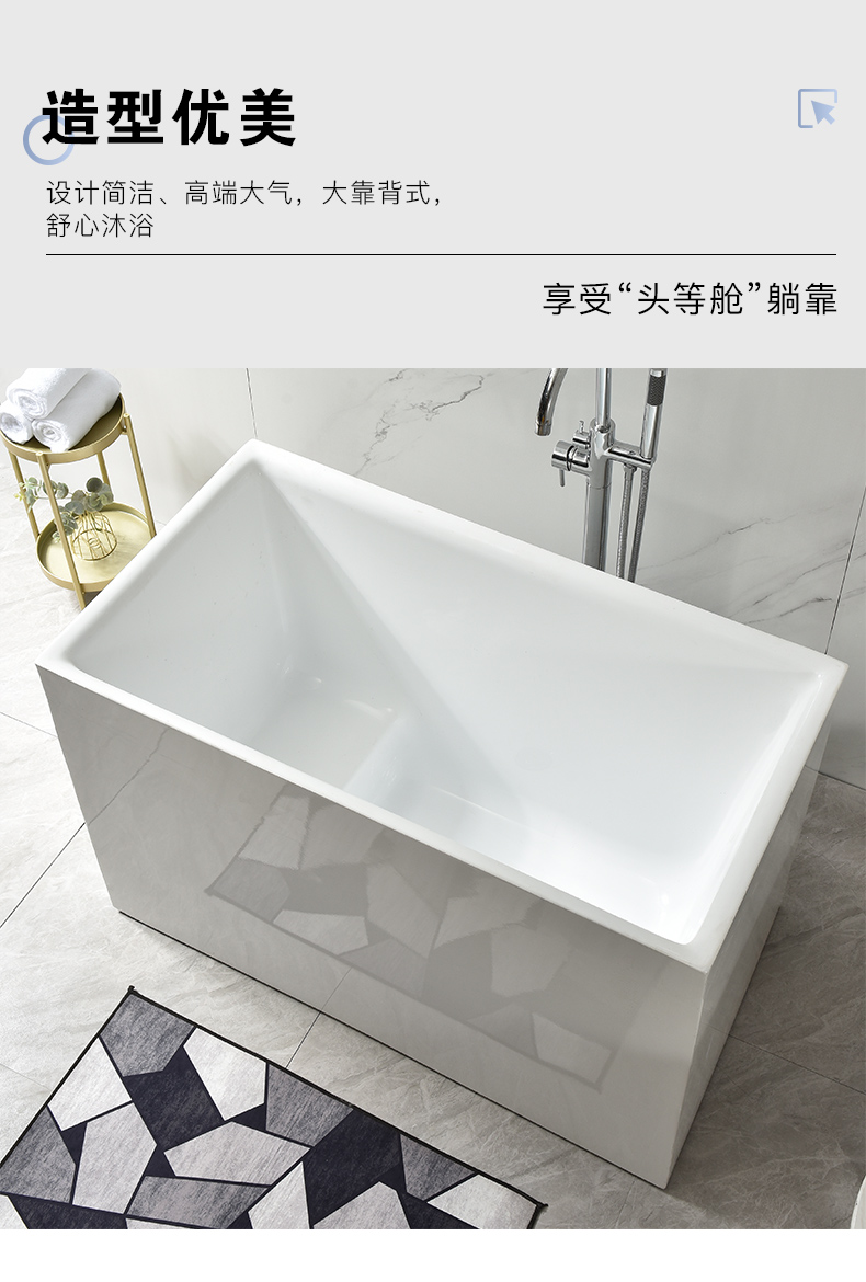 Bồn tắm nhỏ gia đình hộ gia đình nhỏ bọt sâu phong cách Nhật Bản acrylic một mảnh ngồi độc lập có thể di chuyển hình trụ vuông siêu nhỏ