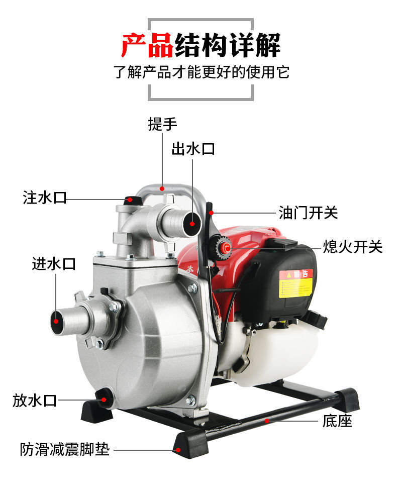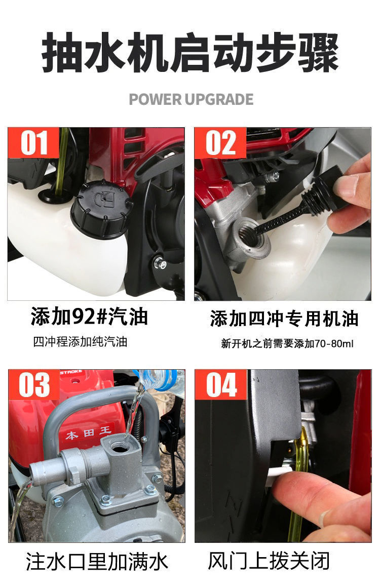 Bốn thì bơm xăng máy bơm nước tưới tiêu nông nghiệp tưới vườn rau hộ gia đình nhỏ tưới nước máy bơm tự mồi cao nâng