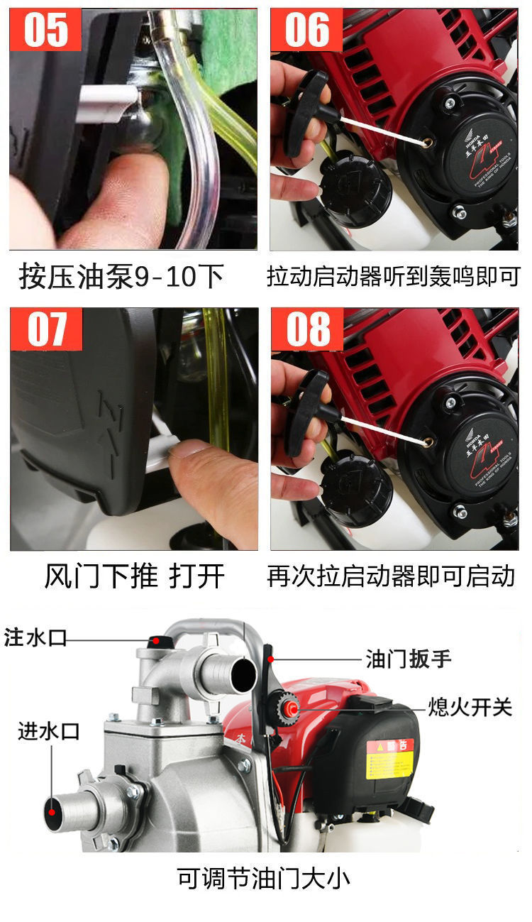 Bốn thì bơm xăng máy bơm nước tưới tiêu nông nghiệp tưới vườn rau hộ gia đình nhỏ tưới nước máy bơm tự mồi cao nâng