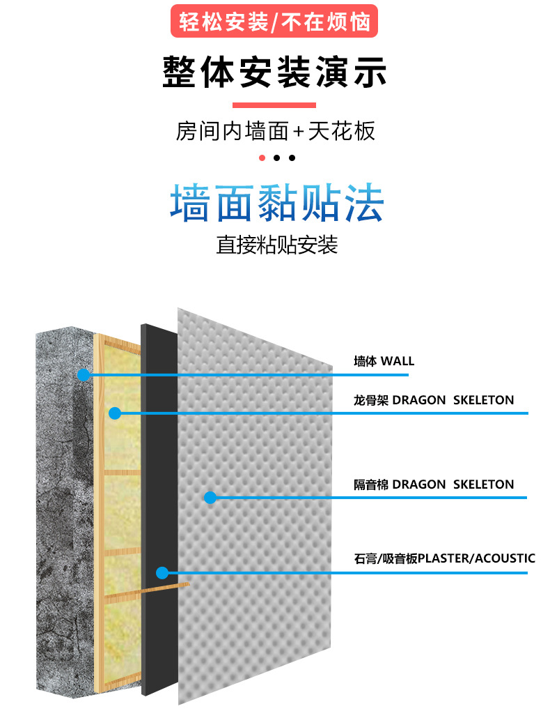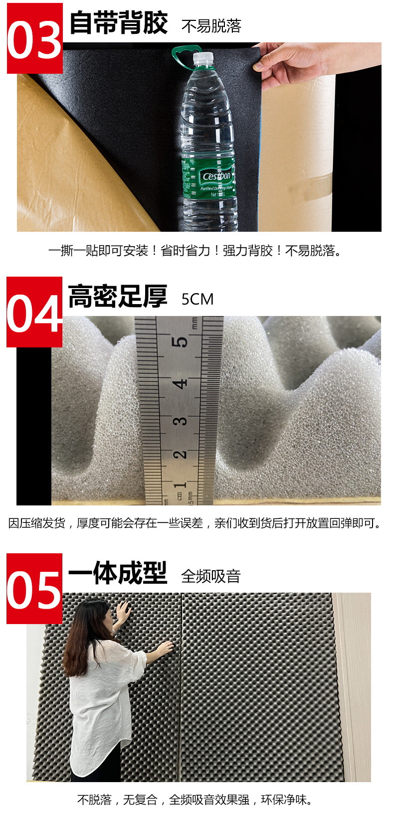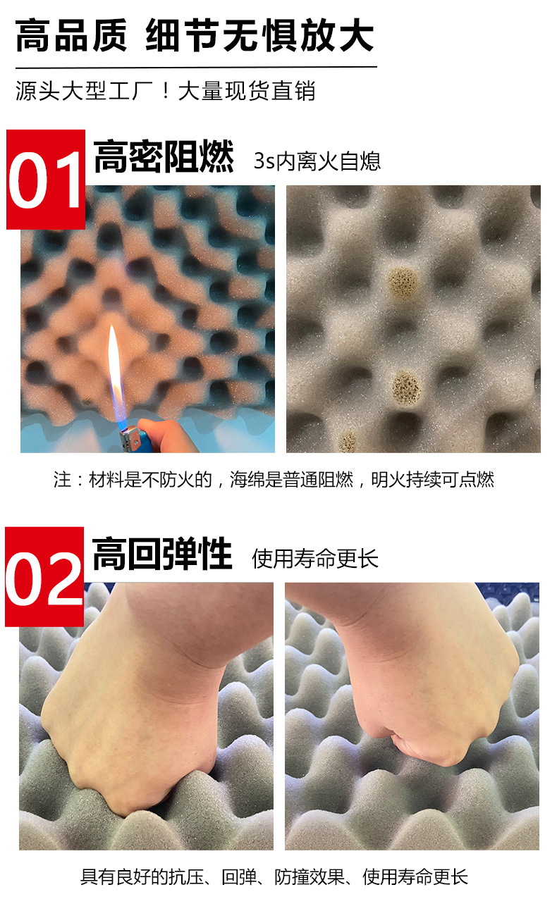 Bông cách âm thân thiện với môi trường Bông xốp hấp thụ âm thanh tường vật liệu xây dựng có thể tự dính Phòng thu âm trong nhà nhãn dán tường thanh chống cháy