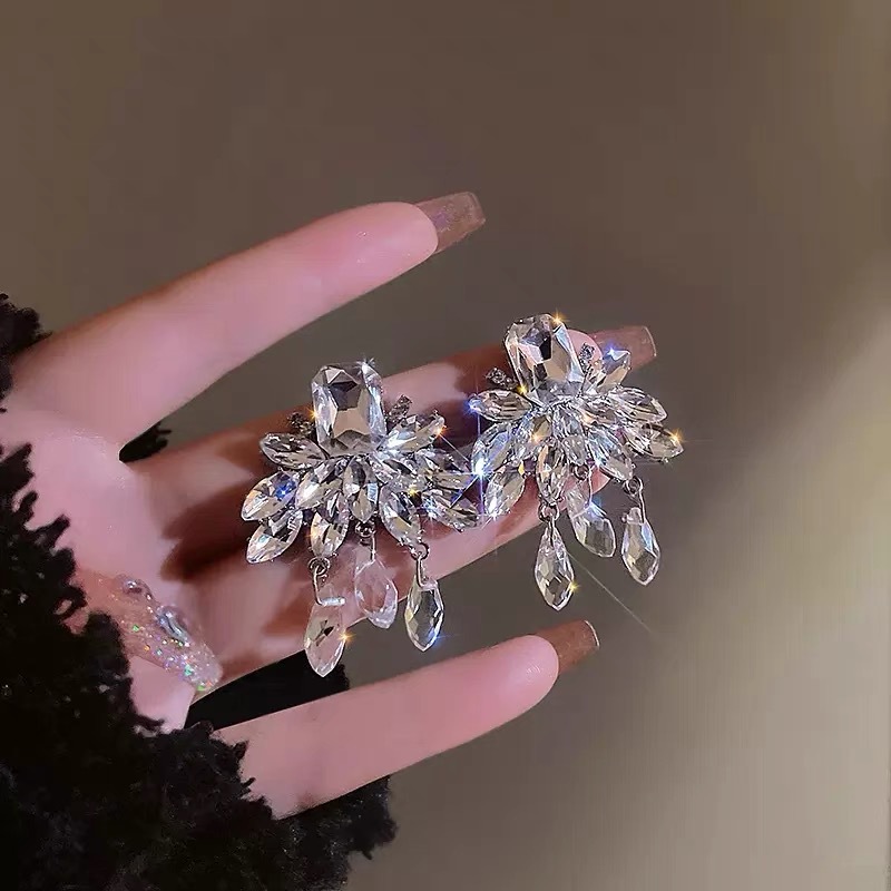Bông tai 2023 mới hợp thời trang ánh sáng sang trọng cao cấp thiết kế thích hợp cô dâu bông tai đính đá phóng đại khí chất bông tai lớn