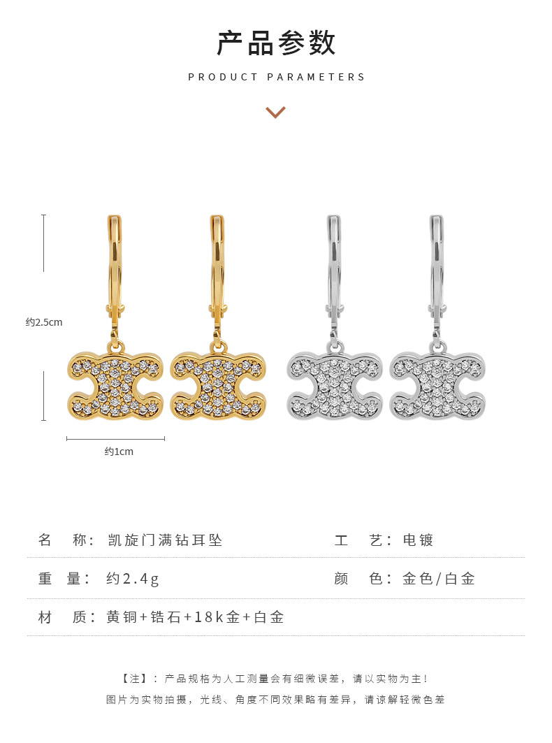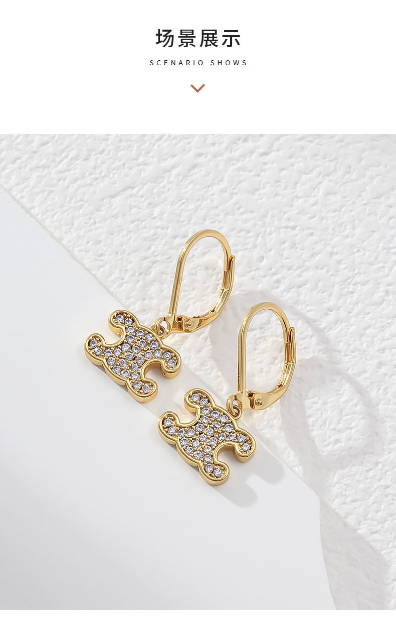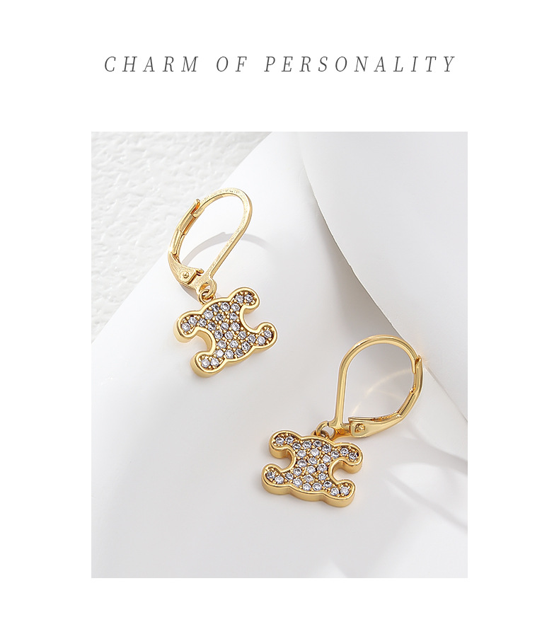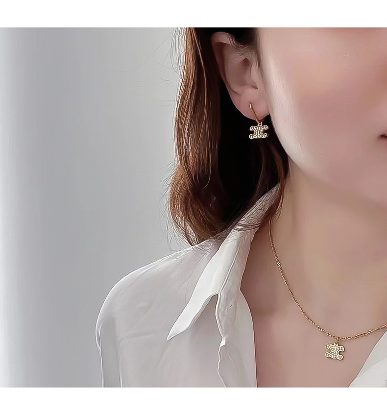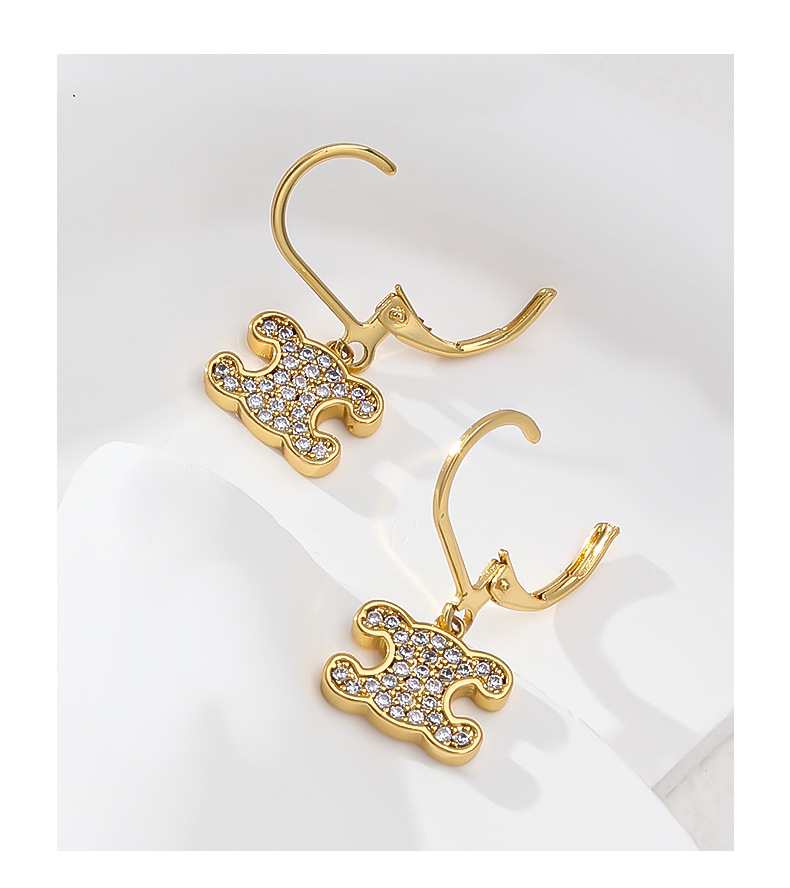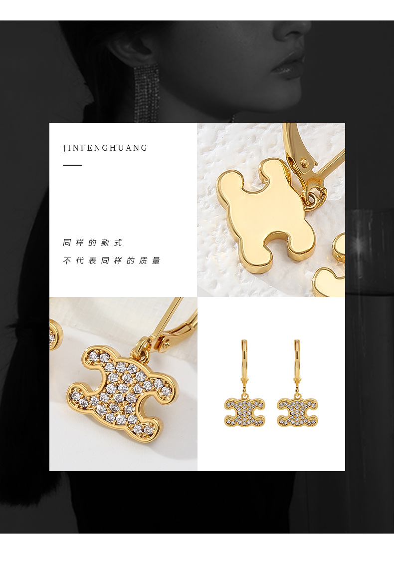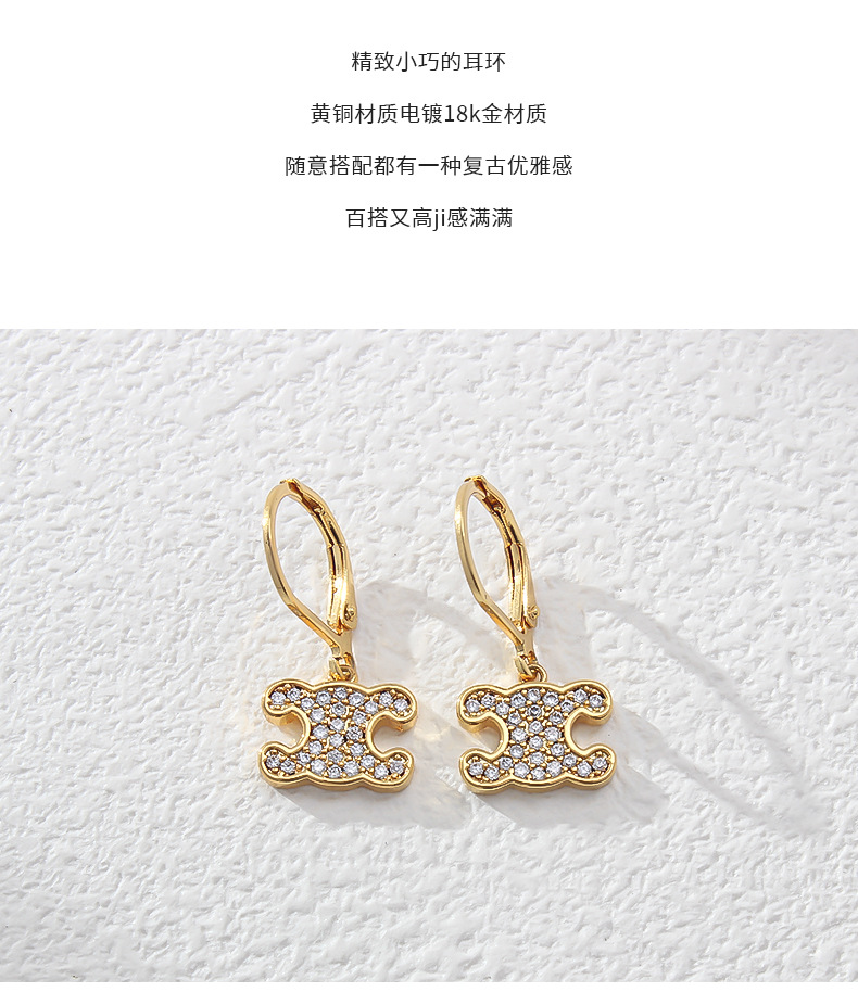 Bông tai Arc de Triomphe 22 thu đông mới bông tai khảm đá zircon mặt dây chuyền Pháp ánh sáng trang sức cao cấp bông tai nữ giác cao cấp