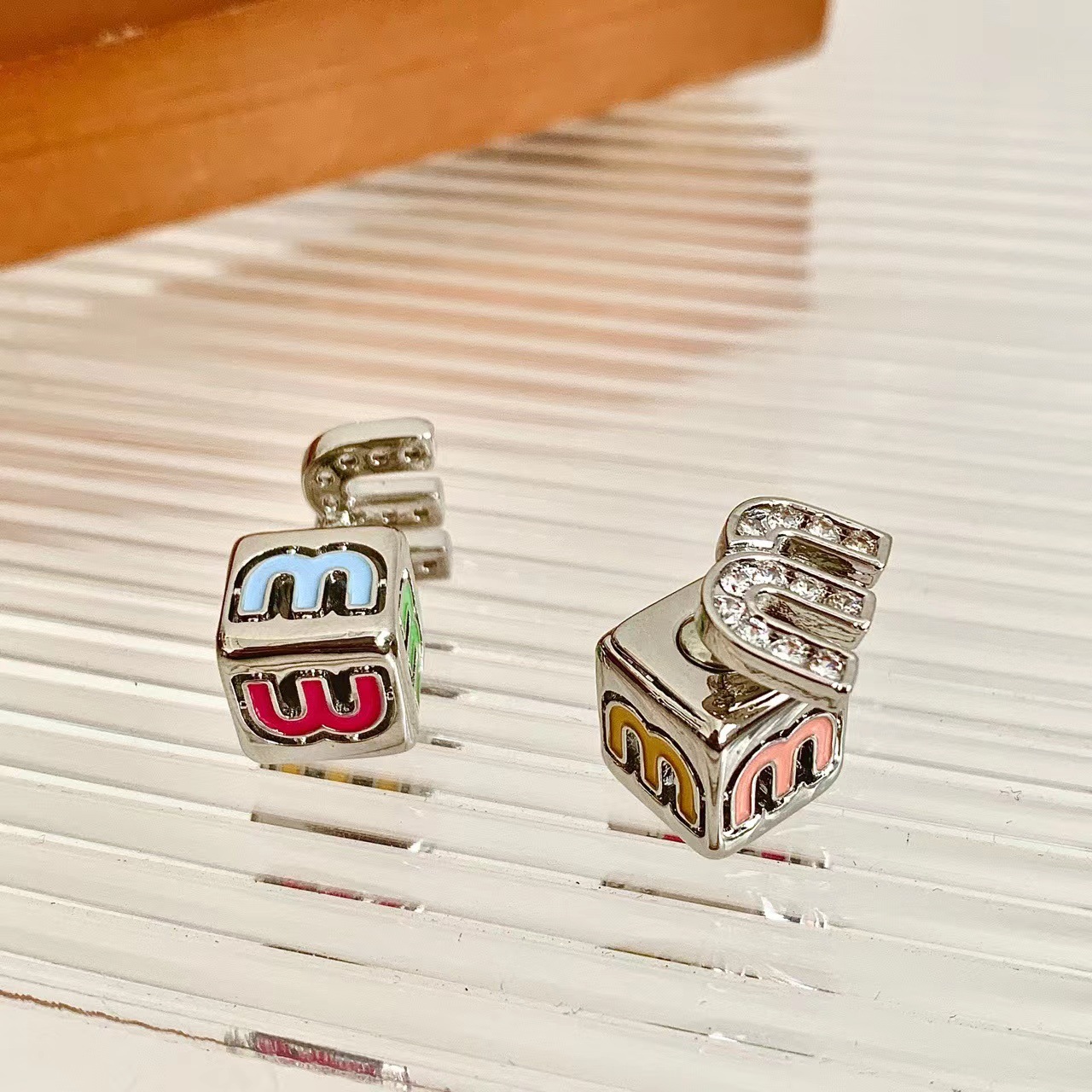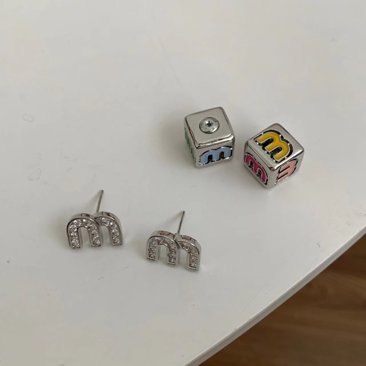 Bông tai chữ M độc đáo hình vuông nhỏ giọt dầu đính đá Zircon Bông tai phong cách retro Pháp xu hướng cá tính mùa hè Bông tai Xiaoxiang cho nữ