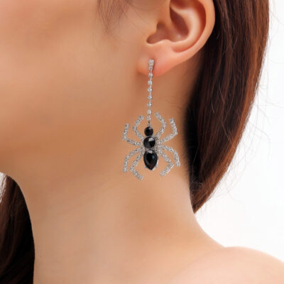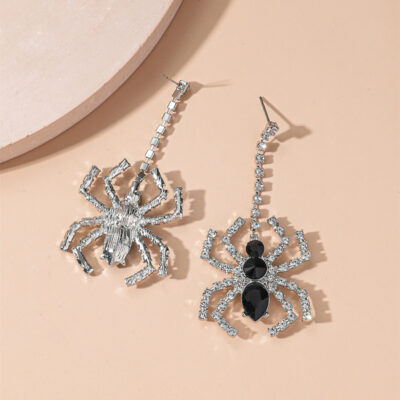 Bông tai halloween bông tai nhện đen đen và trắng rhinestone kim loại dài bông tai bông tai bông tai cá tính không chính thống punk phóng đại trang trí