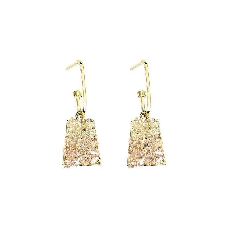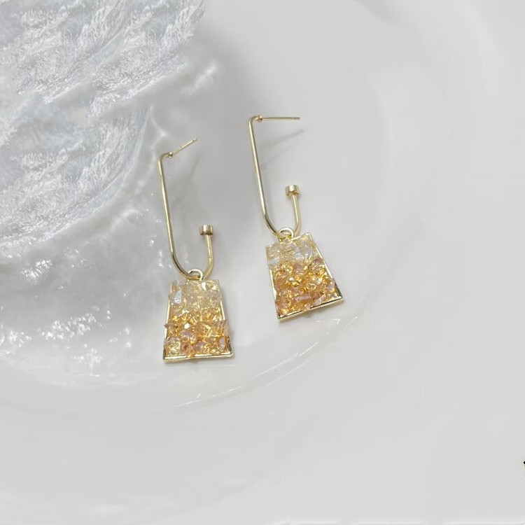 Bông tai hình thang kim bạc 925 Kim cương vỡ nhẹ Bông tai cao cấp sang trọng Khí chất thời trang Bông tai nhỏ tươi mát đơn giản