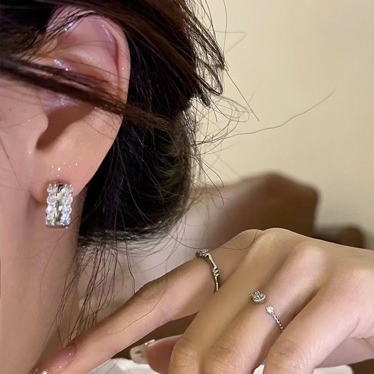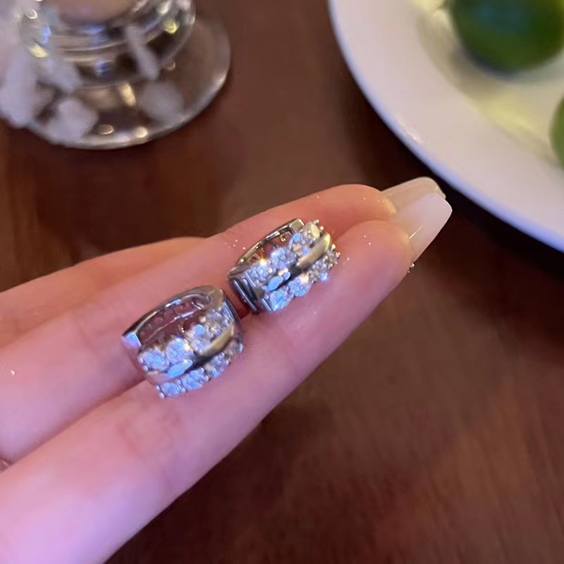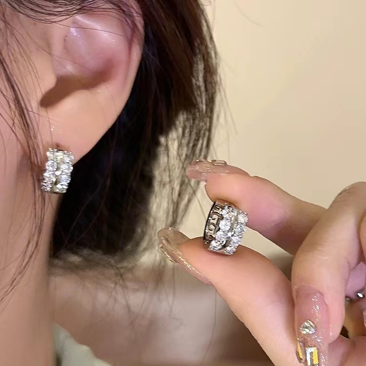 Bông tai hình tròn ~ rhinestone thiết kế thích hợp bông tai gió lạnh cao cấp nữ 2023 bông tai phong cách nước ngoài mới
