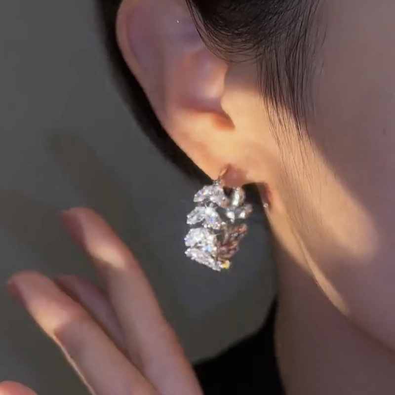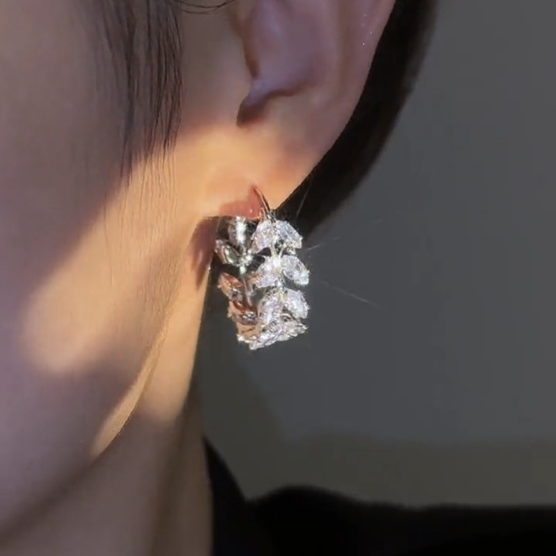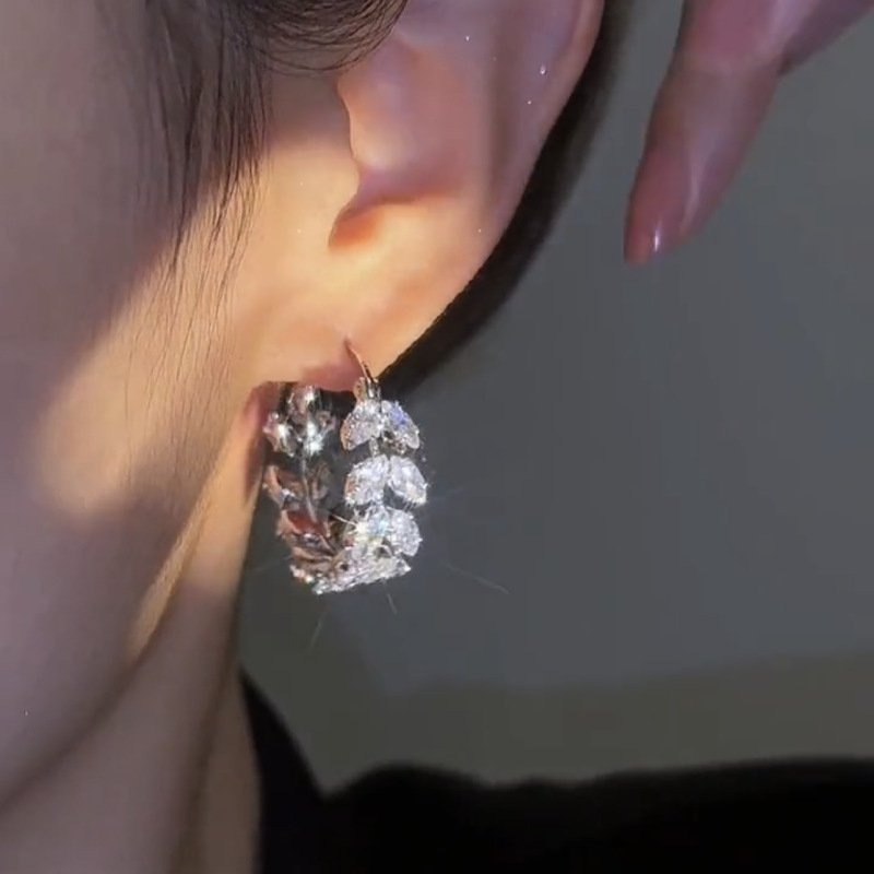 Bông tai lá zircon nhẹ sang trọng tinh tế phù hợp với tất cả Bông tai khí chất siêu flash cao cấp của phụ nữ bông tai lúa mì thiết kế thích hợp
