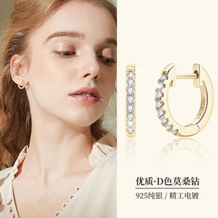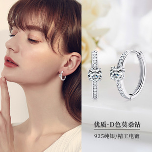 法式精致0.5克拉莫桑石耳环高级感轻奢925纯银耳饰耳圈亚马逊热销