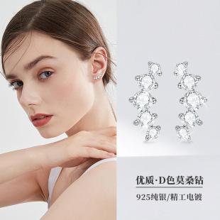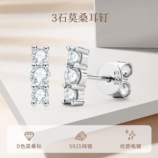 亚马逊跨境热销时尚三石莫桑石耳钉女网红同款小众s925纯银耳饰品