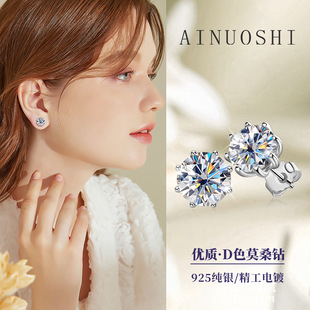 跨境外贸爆款经典六爪正品D色莫桑石耳钉女925纯银镀金耳饰品批发