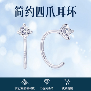 网红时尚简约莫桑钻石四爪耳钉女气质小众百搭纯银耳骨钉饰品批发