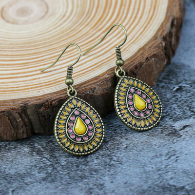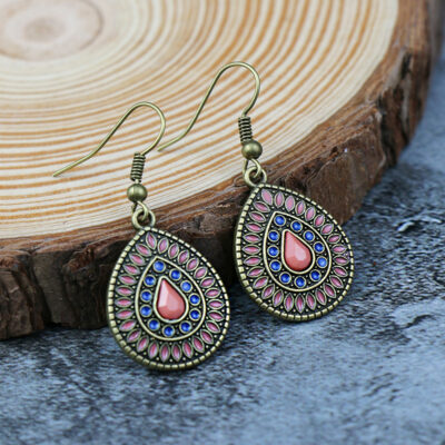 Bông Tai Nổ Xuyên Biên Giới Bông Tai Kim Cương Giọt Nước Retro Dễ Thương Sóng Phiên Bản Hàn Quốc Dầu Giọt Hàn Quốc Đá Quý Bông Tai Nhỏ Bán Buôn