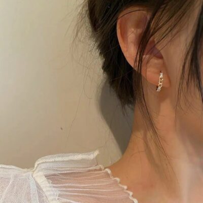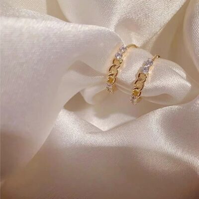 Bông tai zircon chuỗi nhỏ và tinh tế kiểu cổ điển Pháp Bông tai kim bạc đơn giản và linh hoạt cho nữ Bông tai bông tai