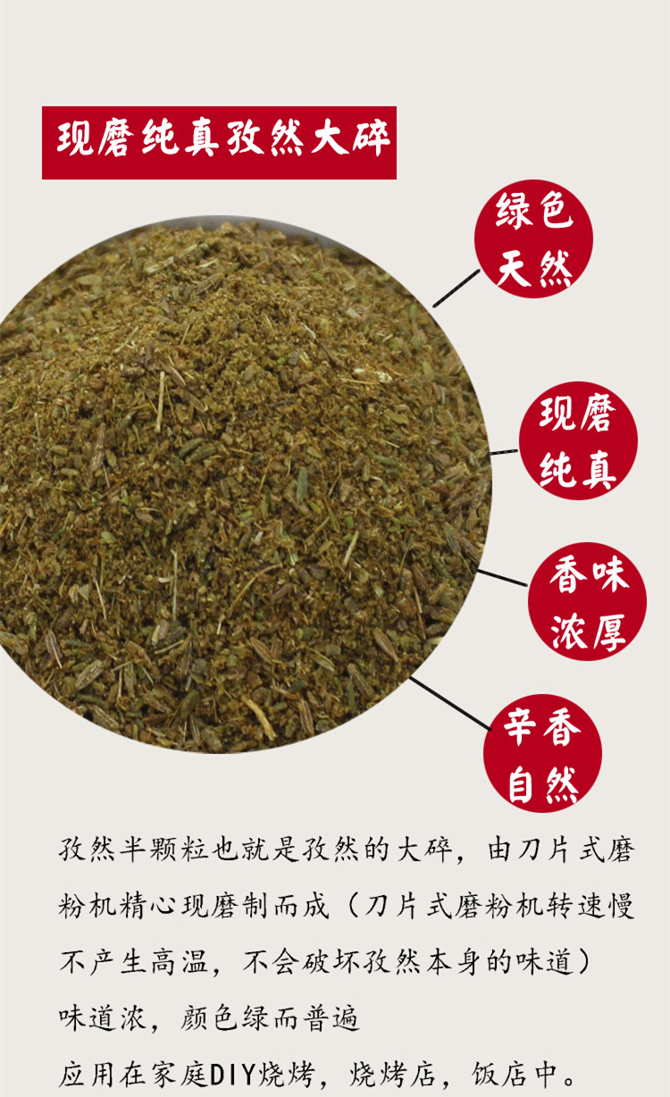 本店现有孜然大碎,孜然中粗粉,孜然特细粉,三种规格,现磨现卖,保证醇香纯真