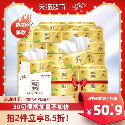 Breeze bơm giấy gói vàng khăn giấy vệ sinh 3 lớp 30 gói khăn giấy mặt gia dụng FCL giá cả phải chăng