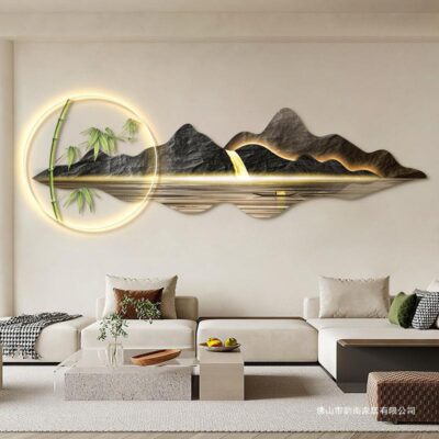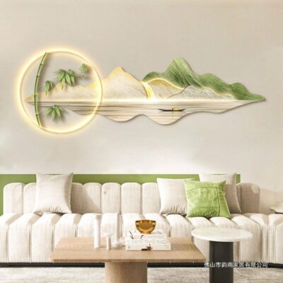 Bức tranh trang trí phòng khách không khí tối giản hiện đại 2023 bức tranh đèn LED mới với bức tranh tường nền sofa