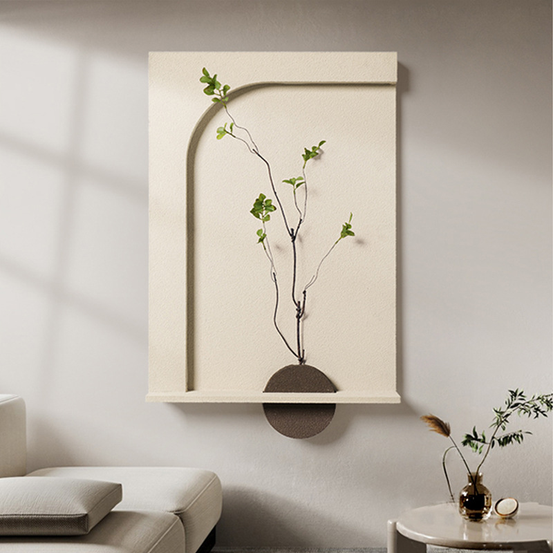 Bức tranh trang trí phòng khách theo phong cách Wabi-sabi bức tranh nền sofa cây xanh vẽ tranh tường Bầu không khí sa thạch tối giản với bức tranh treo hiên nhà nhẹ nhàng