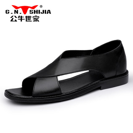 Bull Family Giày nam mùa hè Dép nam xu hướng da mềm Đáy thường Lái xe nam Giày đi biển nam
