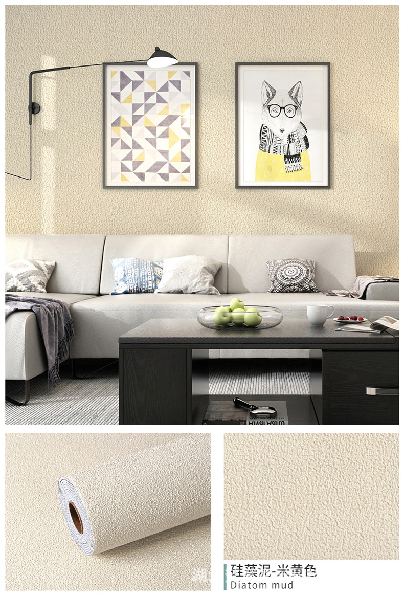 Bùn tảo cát 10 mét giấy dán tường tự dính giấy dán tường màu tinh khiết cuộn xốp chống thấm và chống ẩm 3d nhãn dán tường nền ba chiều